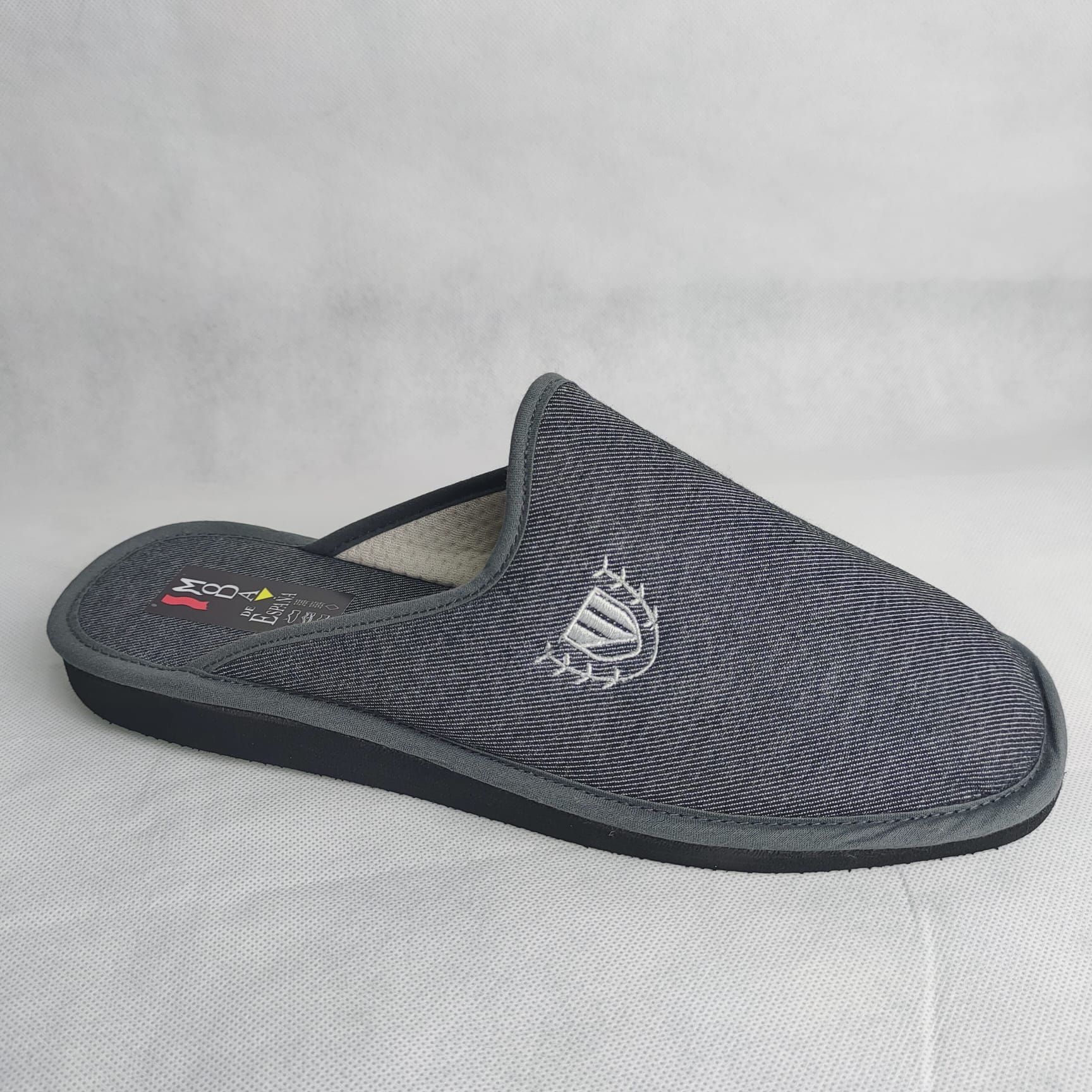 Berevere – Zapatilla de casa de hombre en tejido textil con estampado logo en gris- VICKY Zapatos