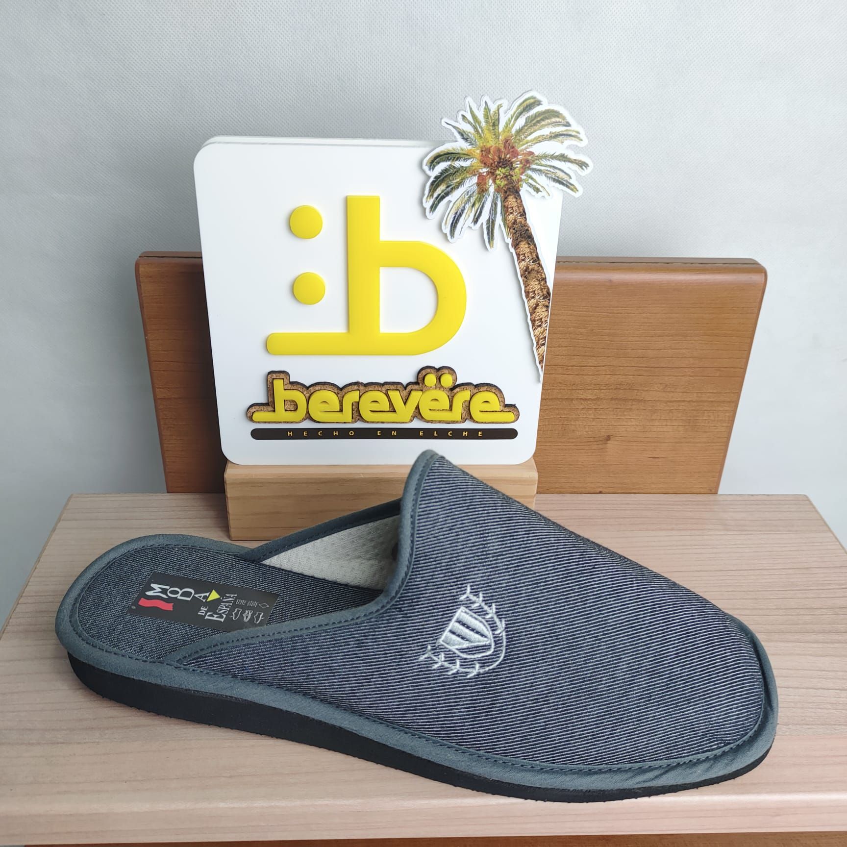 Zapatilla de casa Berevere de hombre en tejido textil. Con plantilla acolchada y piso de caucho antideslizante ultraligero. Fabricadas en España. Tallas del 39 al 46.