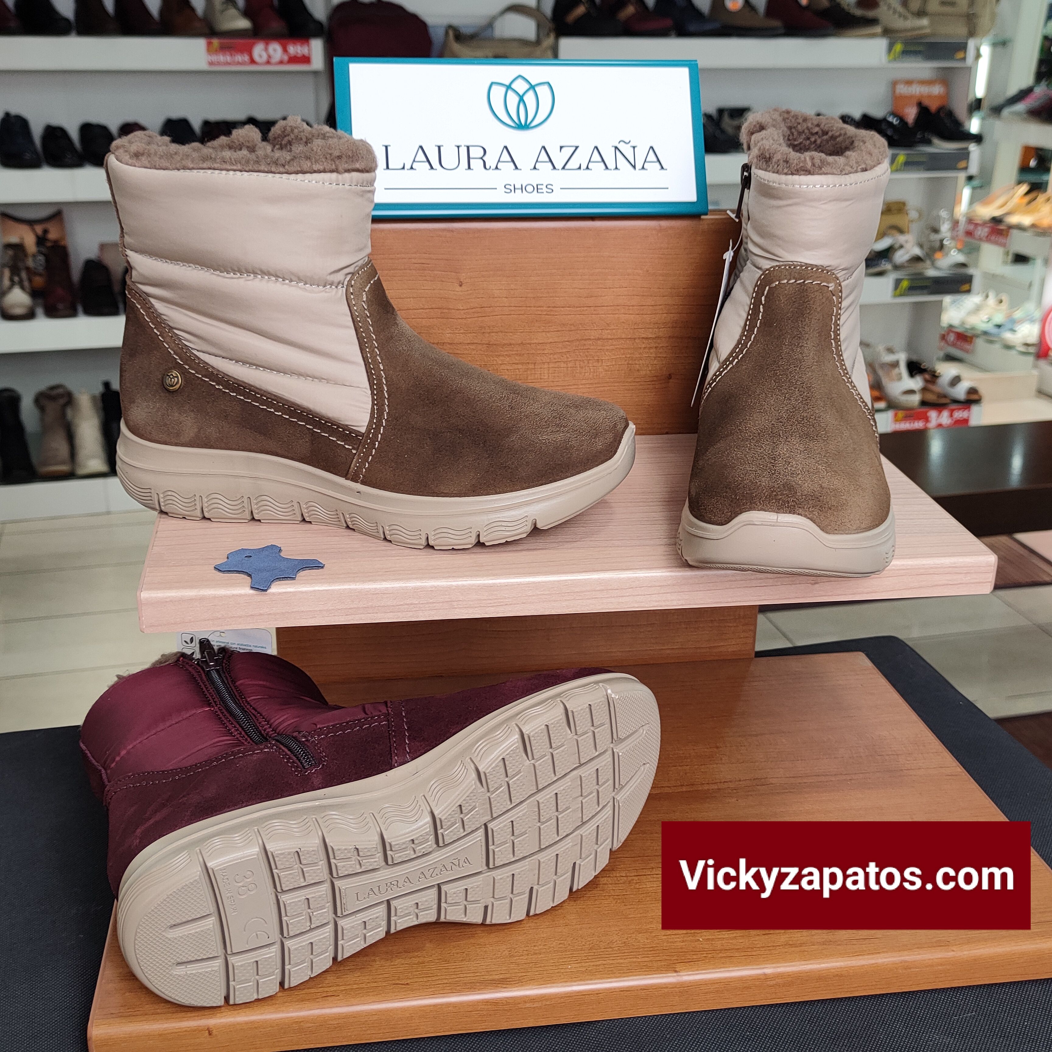 LAURA AZAÑA: Botín deportivo casual fabricado en material Piel Afelpada Combinado con Textil al Tono, cremallera y plantilla extraíbles, pisos ultra light de máxima calidad y confort, Hechos en España