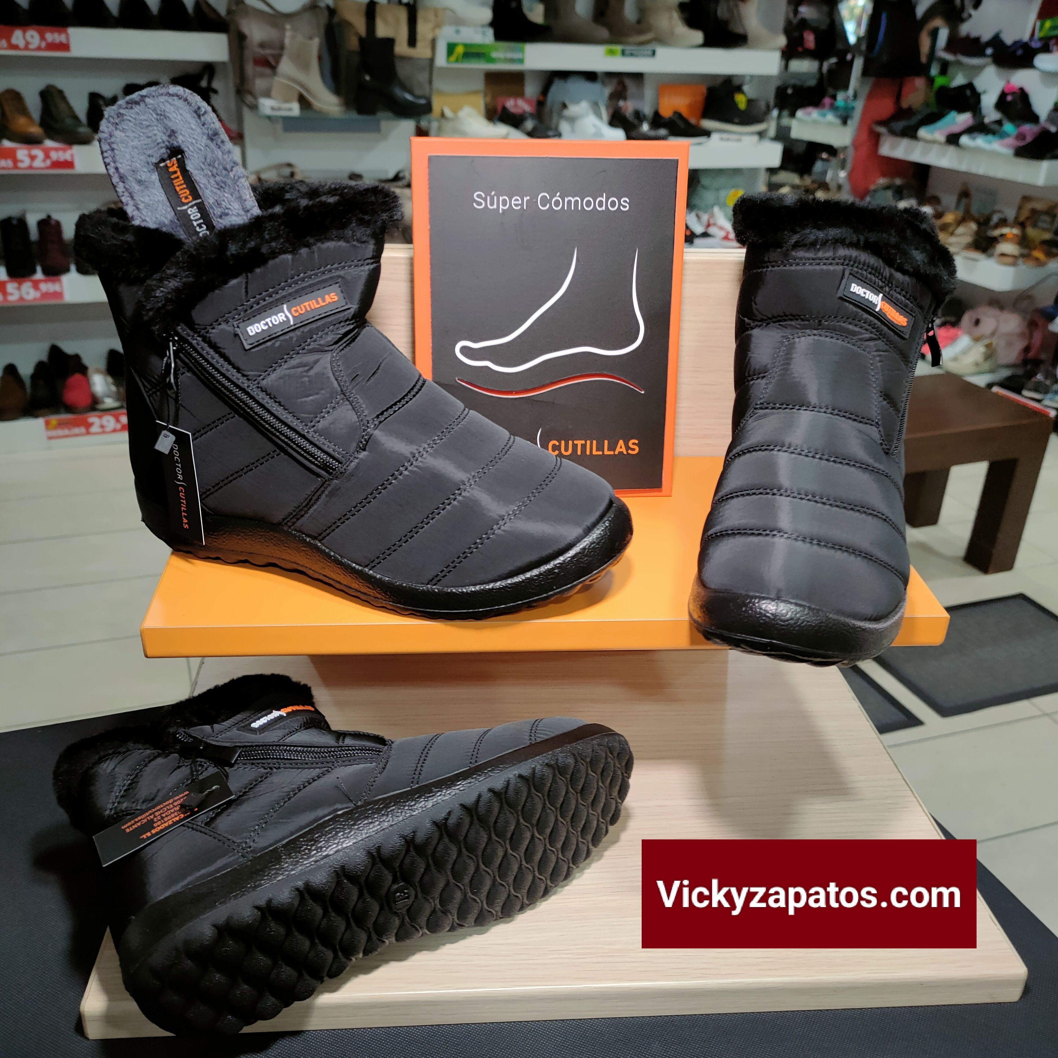 DOCTOR CUTILLAS: Botín en nailón con cremallera exterior y forro de pelo, ancho especial ideal para pies delicados, piso confort plano, Hechos en España