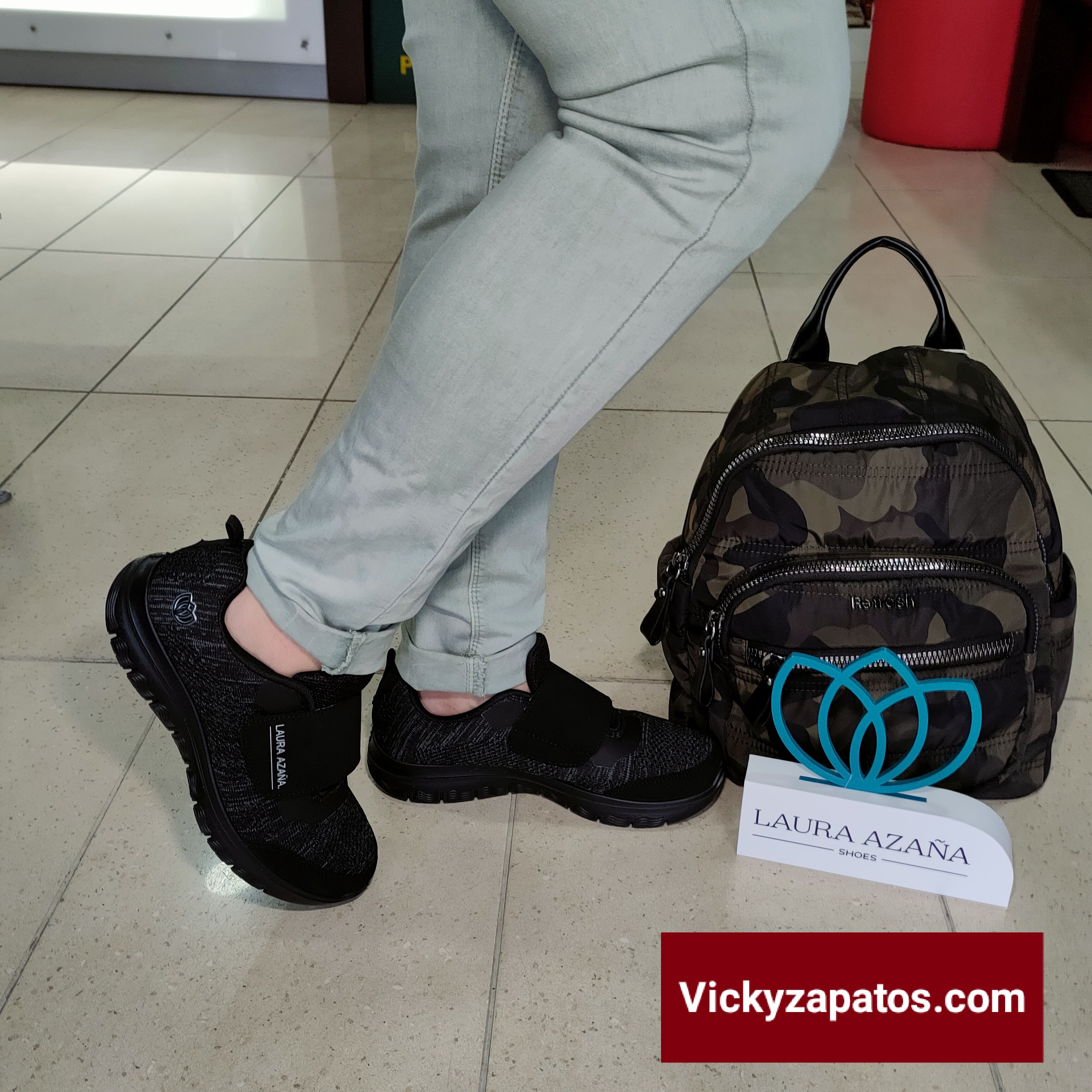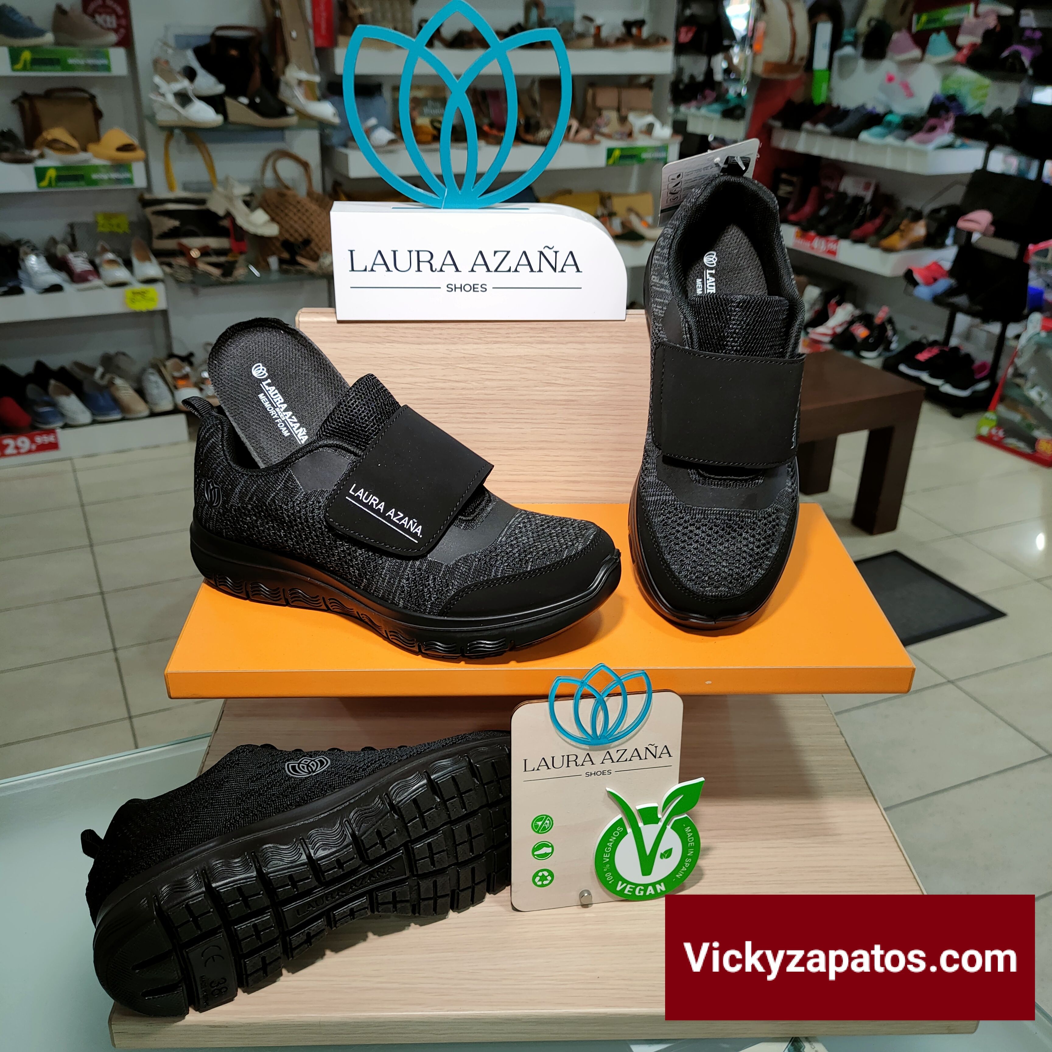 LAURA AZAÑA: Deportiva casual con velcro todo en textil transpirable, disponible en color Negro, piso de caucho con plantilla Memory Foam, Hecho en España Nueva Colección Primavera Verano 22