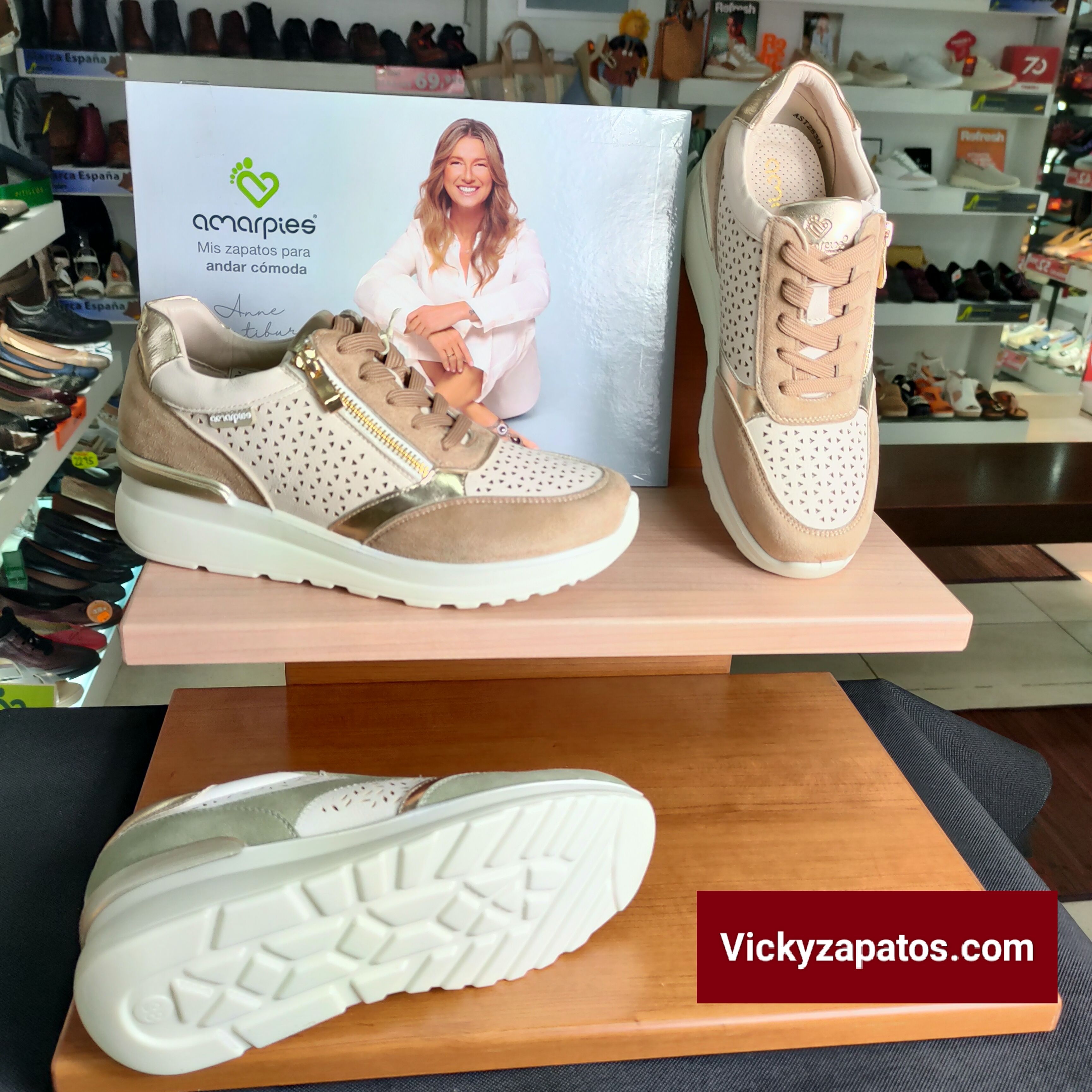 AMARPIES: Deportivo Vegano en color Taupe Combi de cordón y cremallera con tejido en licra y plantilla confort Extraíble de Memory Foam, piso de cuña Ultra Light con plataforma para un máximo confort, Nueva Temporada de AMARPIES