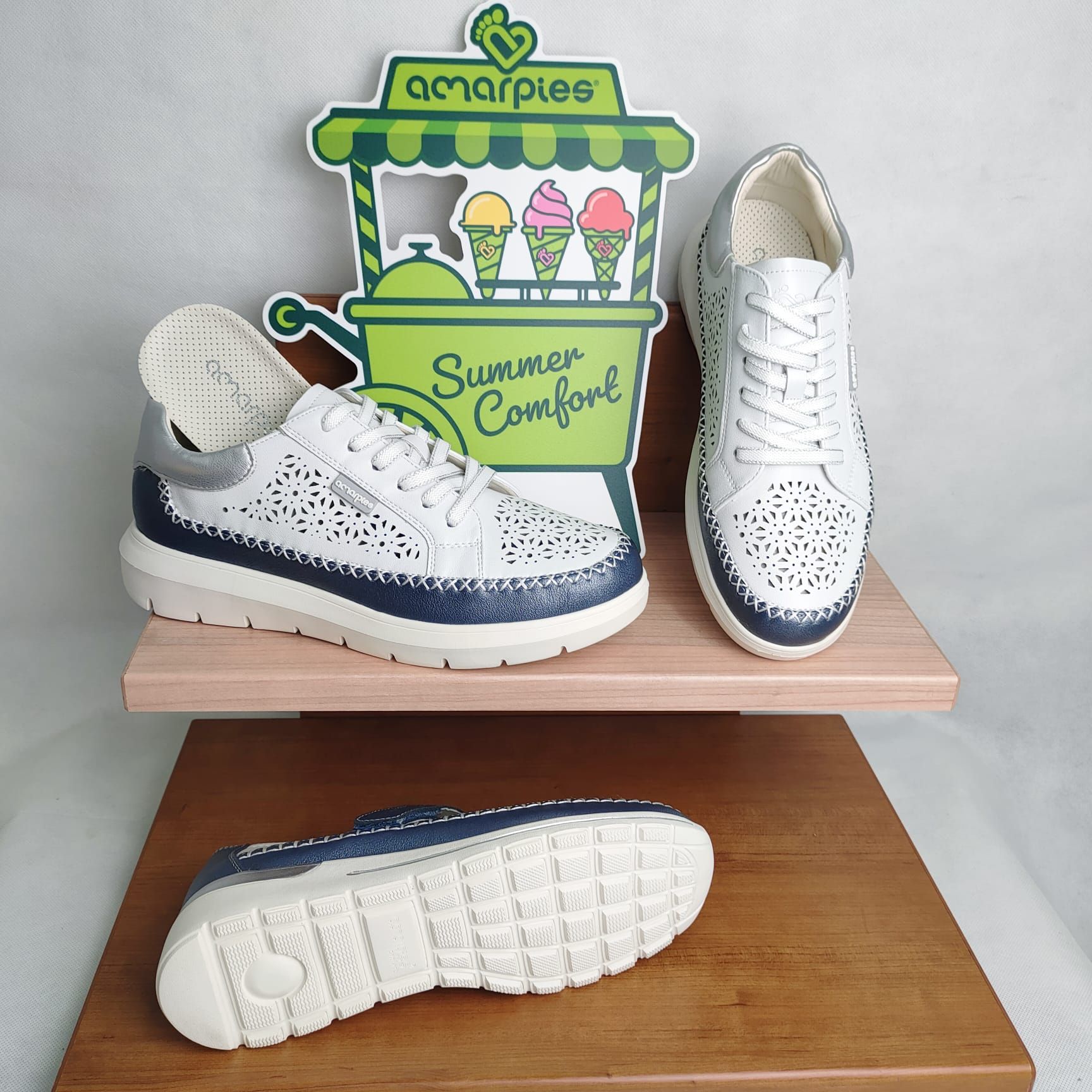 Deportivo Casual Vegano AMARPIES Blanco y Jeans con Plantilla Memory Sponge