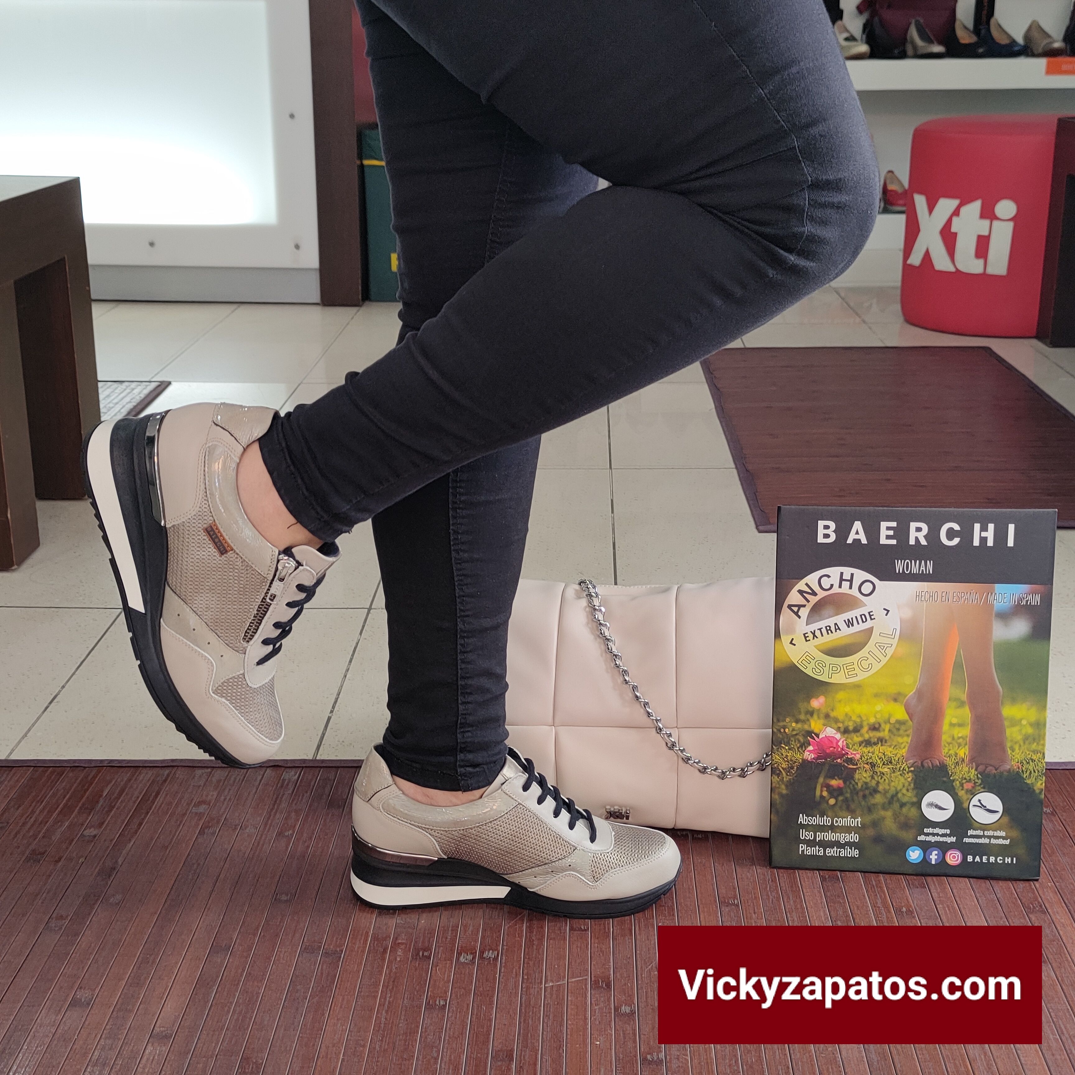 BAERCHI WOMAN: Deportivo de piel lisas combinado con piel troquelada, disponible en dos colores: Gris y Negro, dispone de cordón y cremallera lateral para máximo ajuste y confort, forro Textil, Ancho Especial con plantilla Extraíble piso de cuña media con plataforma en tricolor: plata, blanco y negro, Hecho en España Todo Moda