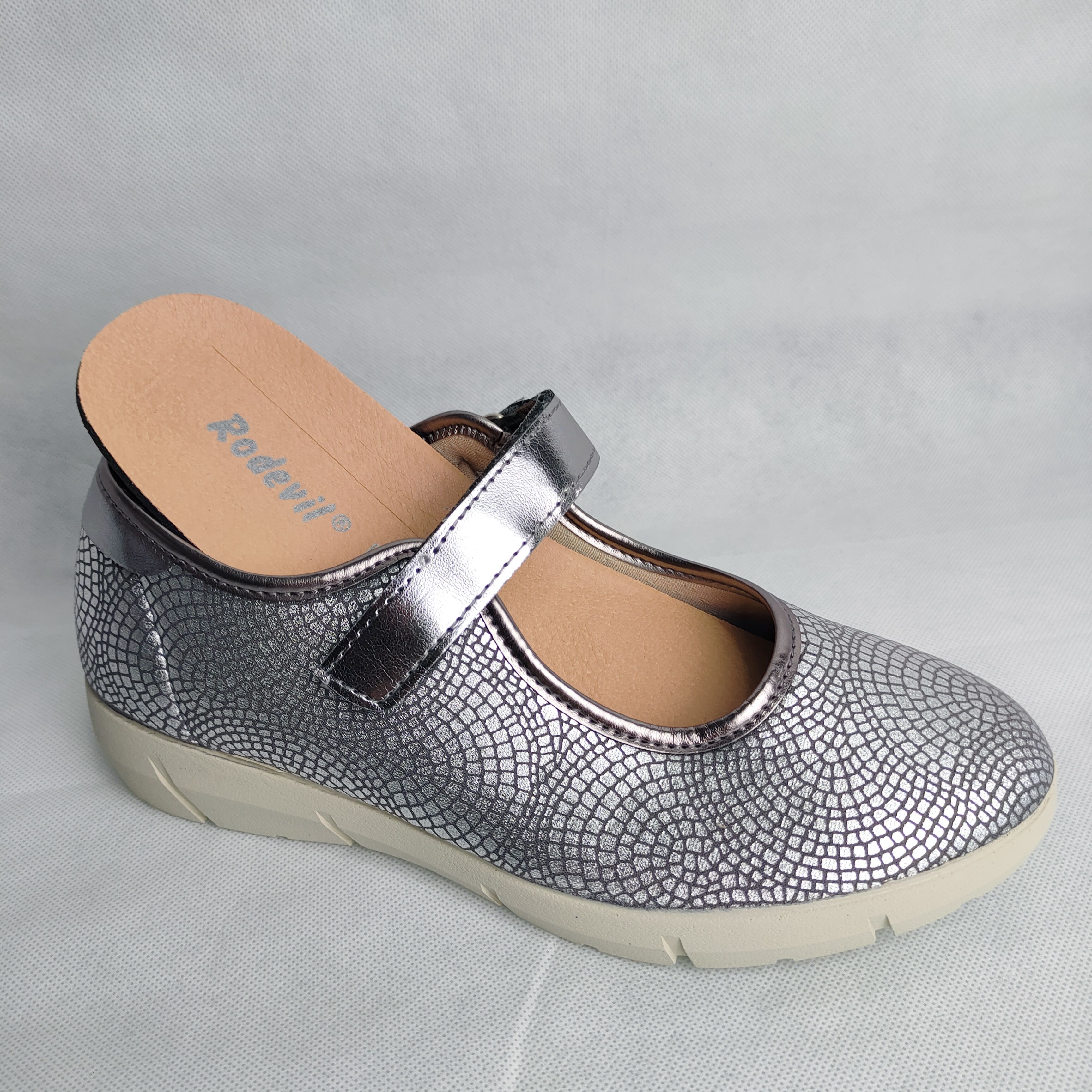 Merceditas confort de mujer en material vegano color plomo grabado. Cómodas, ligeras y con plantilla memory foam extraíble.