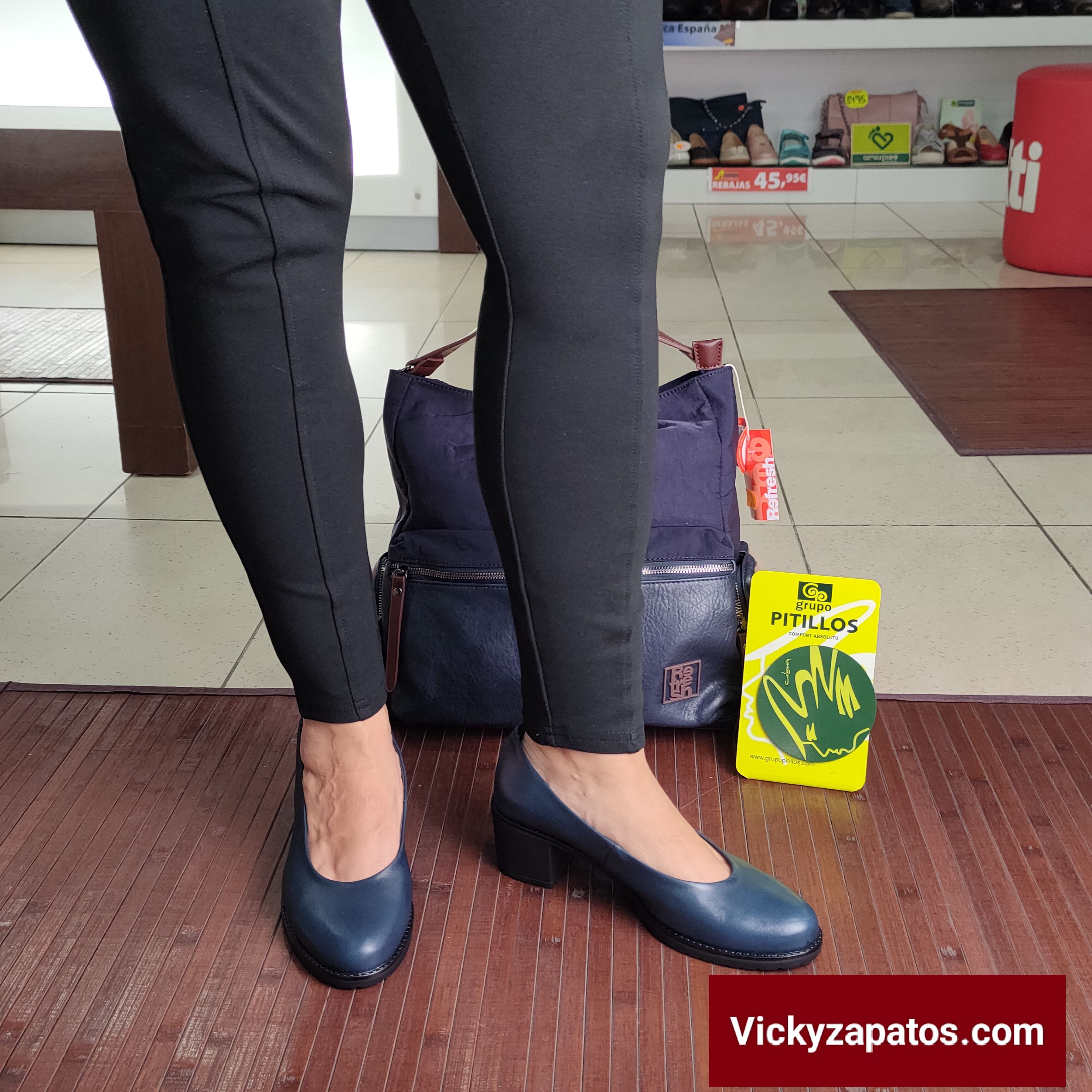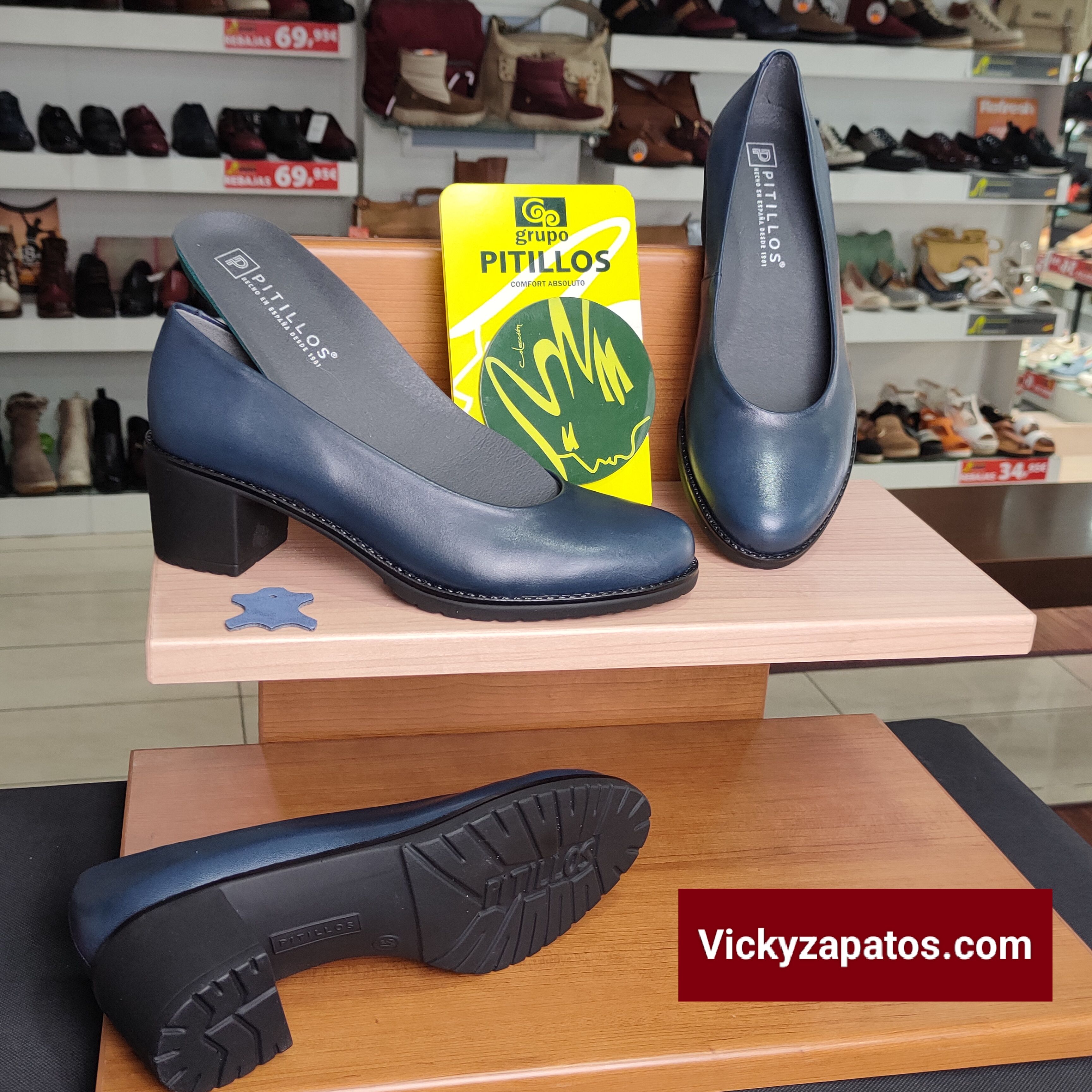 PITILLOS: Salón de piel lisa en color Marino, Plantilla Extraíble, Tacón Medio Ancho con plataforma, máximo confort y calidad Especial para Azafatas y Uniformes Hechos en España