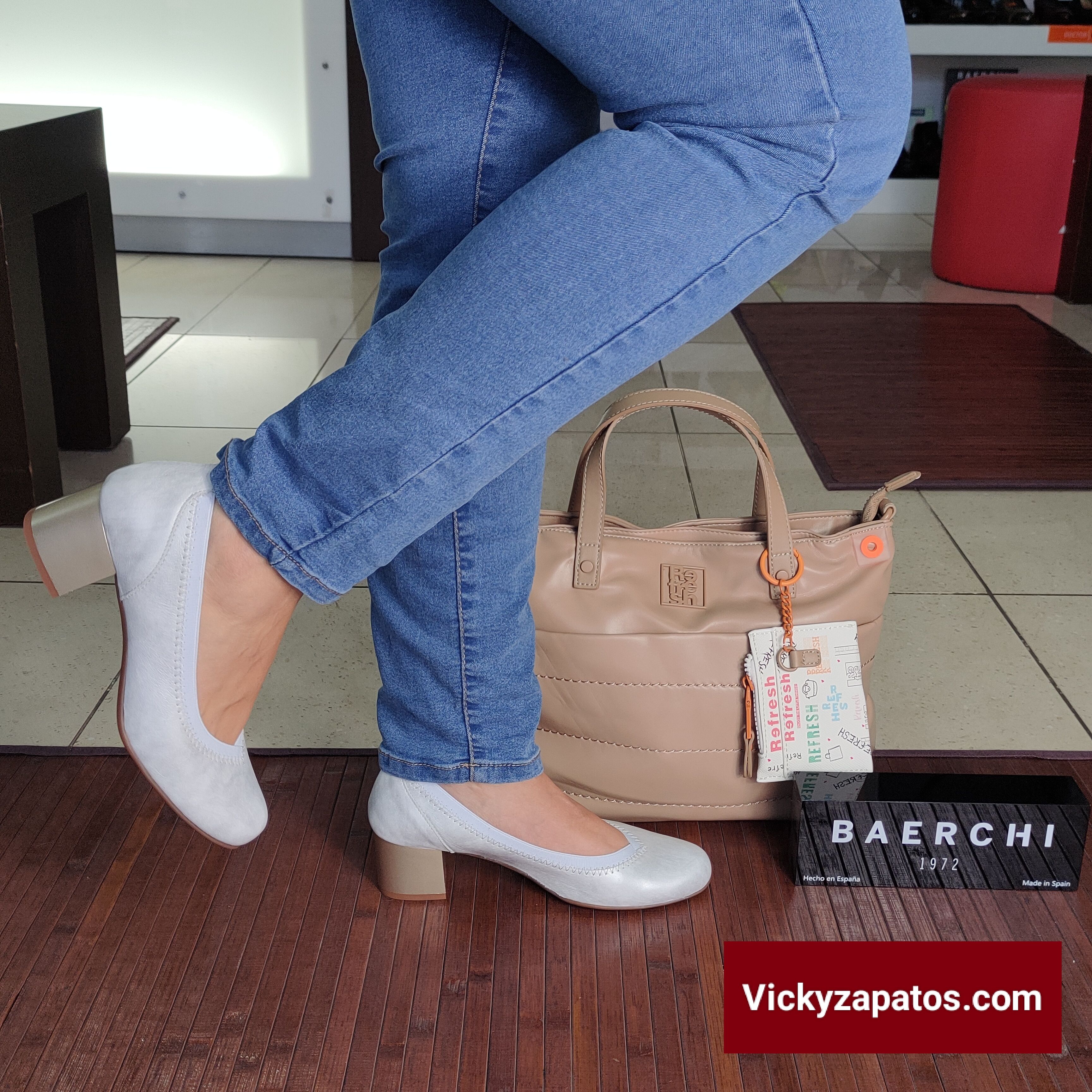 Salón de Piel con Elástico Y Tacón Medio BAERCHI 52230 Hechos en España Nueva Colección Primavera-Verano