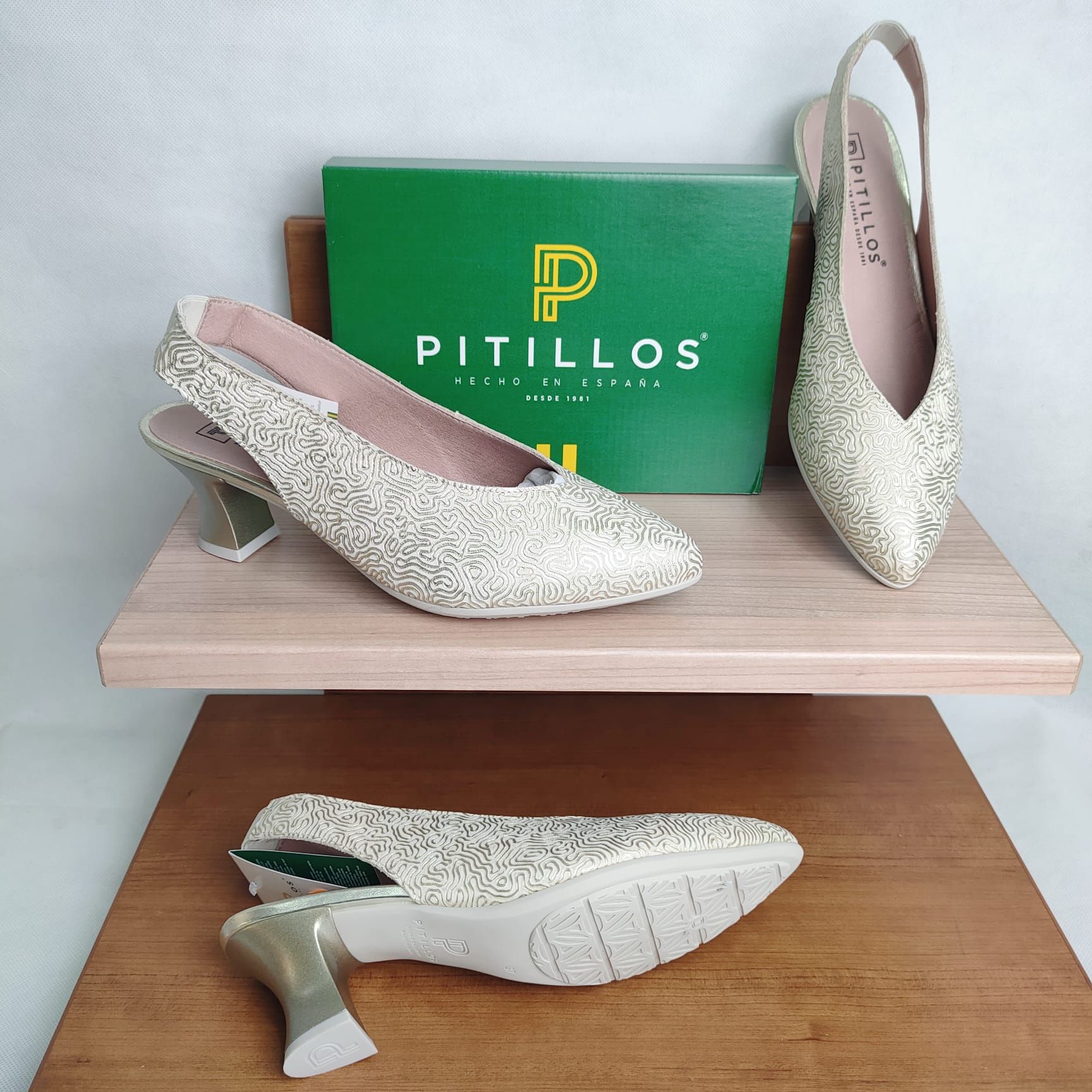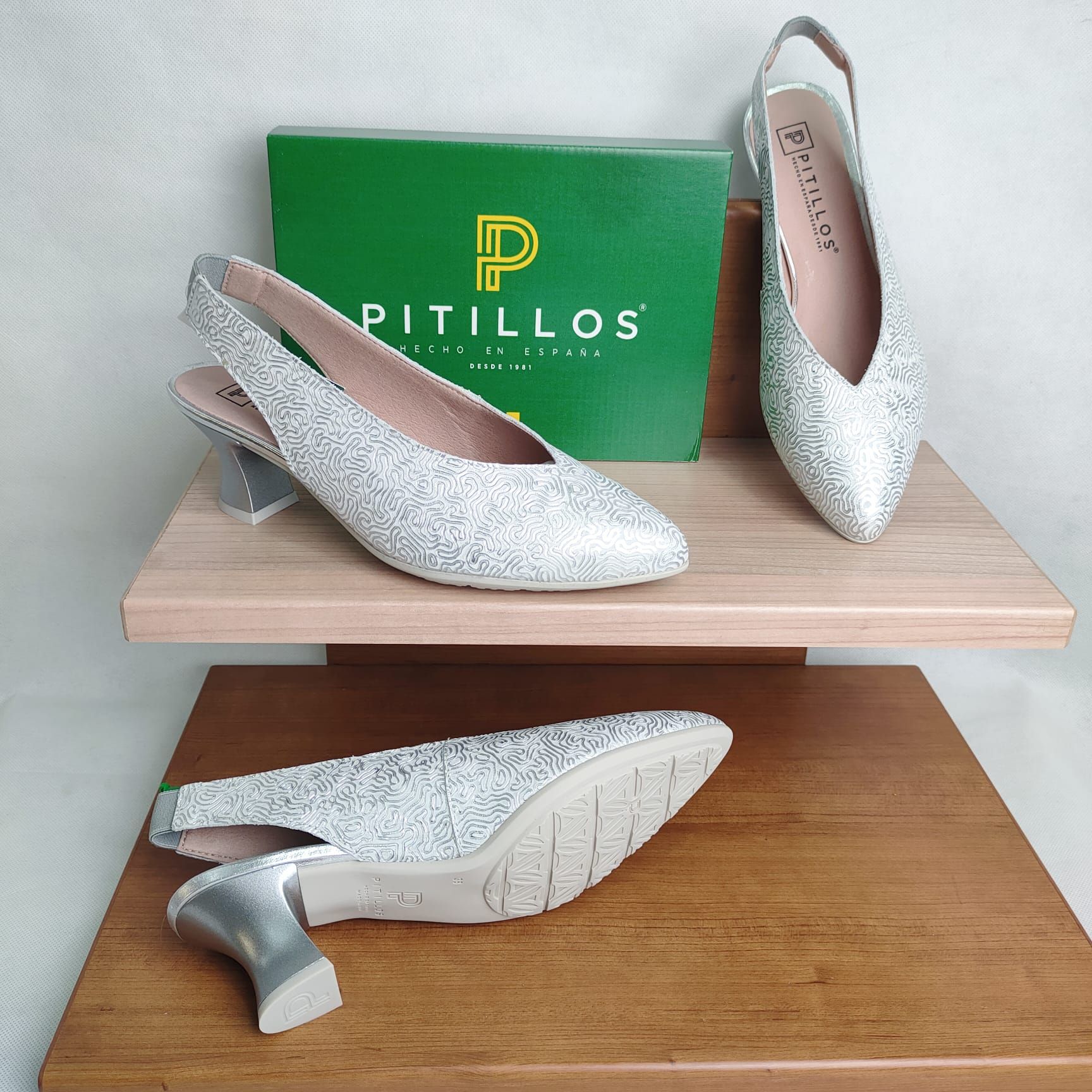 El salón PITILLOS 11180 es un modelo elegante y sofisticado diseñado para ofrecer estilo y comodidad en cada paso. Fabricado en piel grabada con ondas metalizadas, está disponible en dos colores muy versátiles: oro y plata, ideales para combinar con looks de vestir o conjuntos más especiales.
