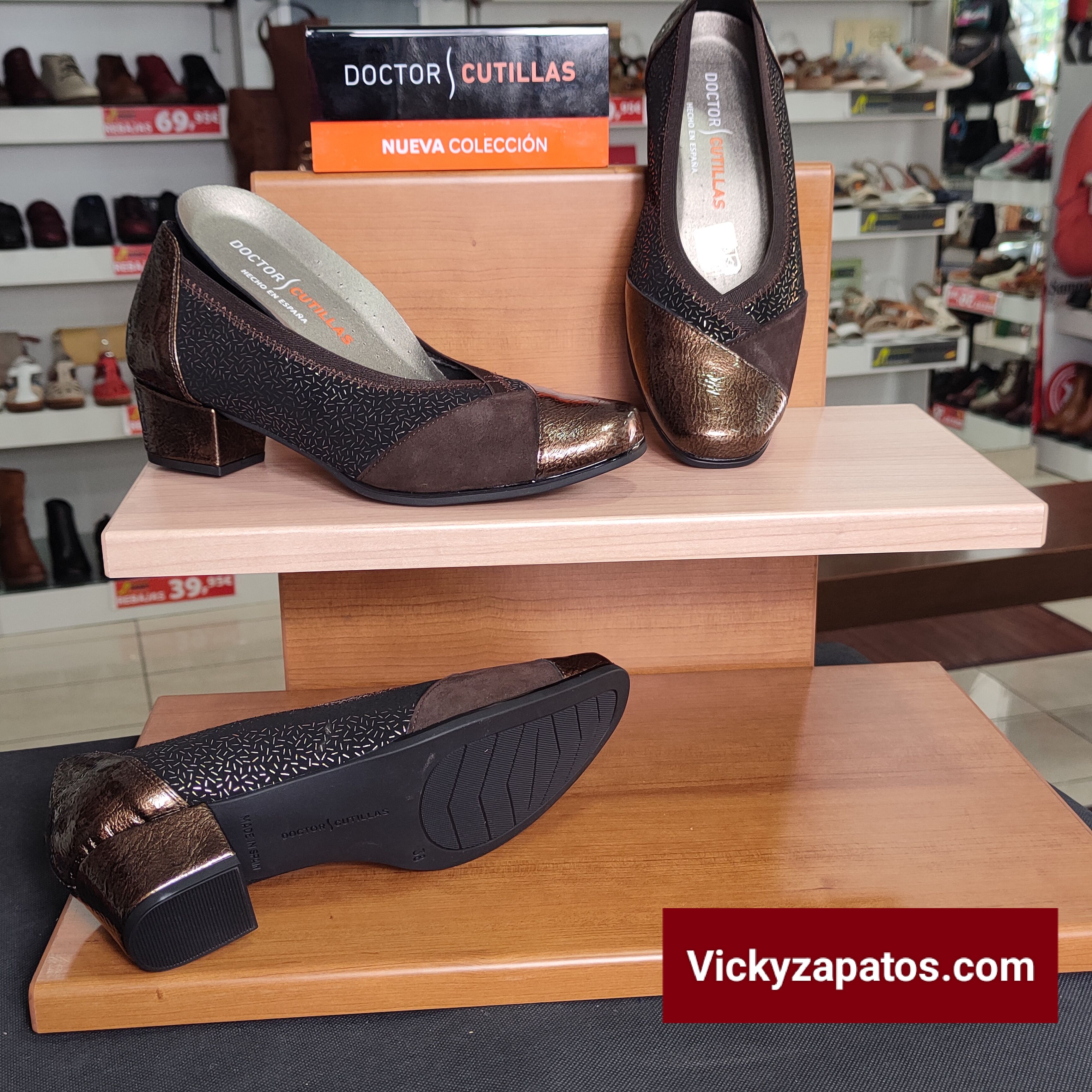 DOCTOR CUTILLAS: salón de piel y lycra de máxima adaptación, disponible en Dos Colores: Negro y Marrón, plantilla extraíble, ajuste elástico, tacón medio ancho, nueva colección Hechos en España