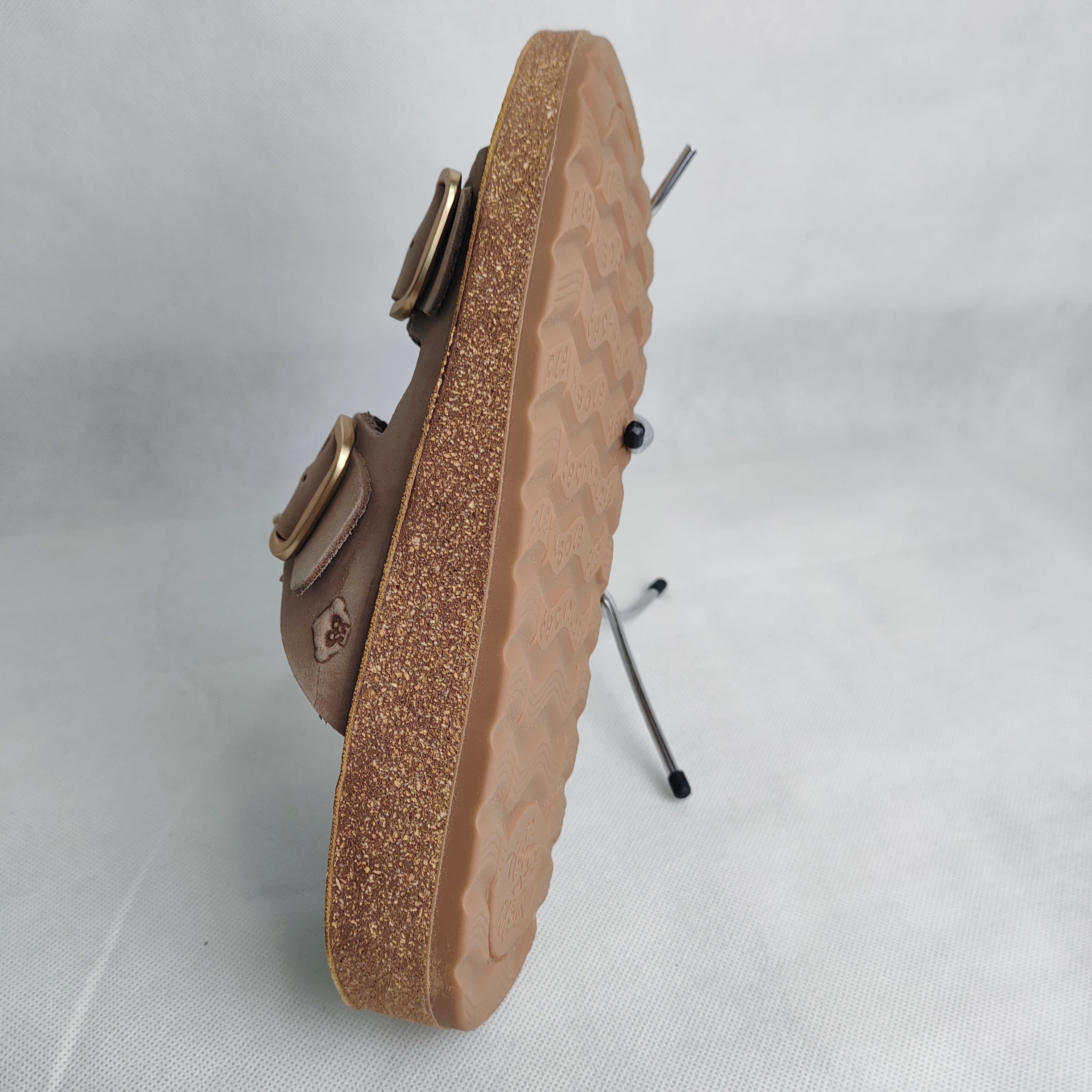 Sandalia bio de mujer en piel nobuck con doble hebilla. Cómoda, ligera y perfecta para el día a día.