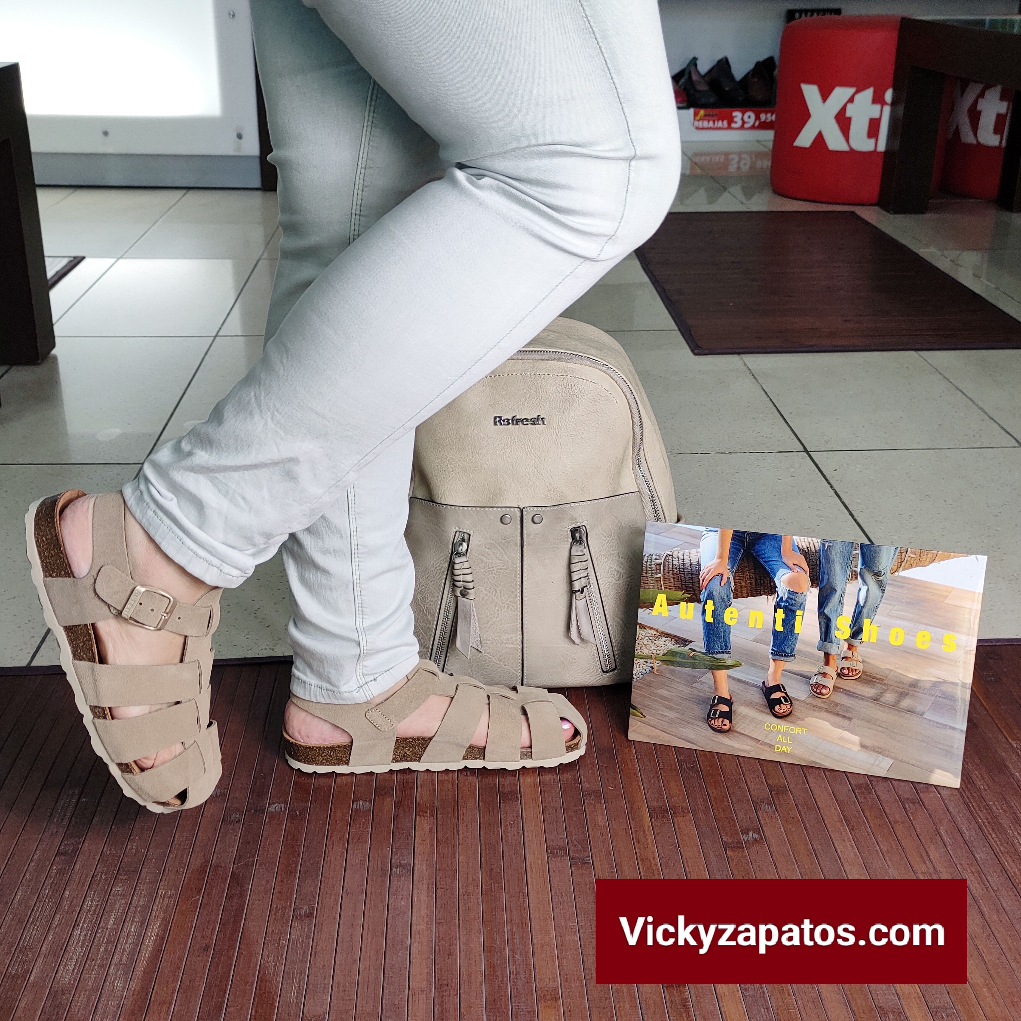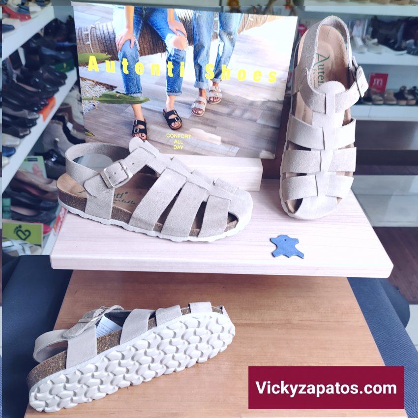 AUTENTI Be Confortable: Sandalia cangrejera en Piel Afelpada Con Una Hebilla Ajustable y puntera cerrada, Piso de Corcho Natural BIO, Disponible en Colores: Taupe, Todas Hechas en España