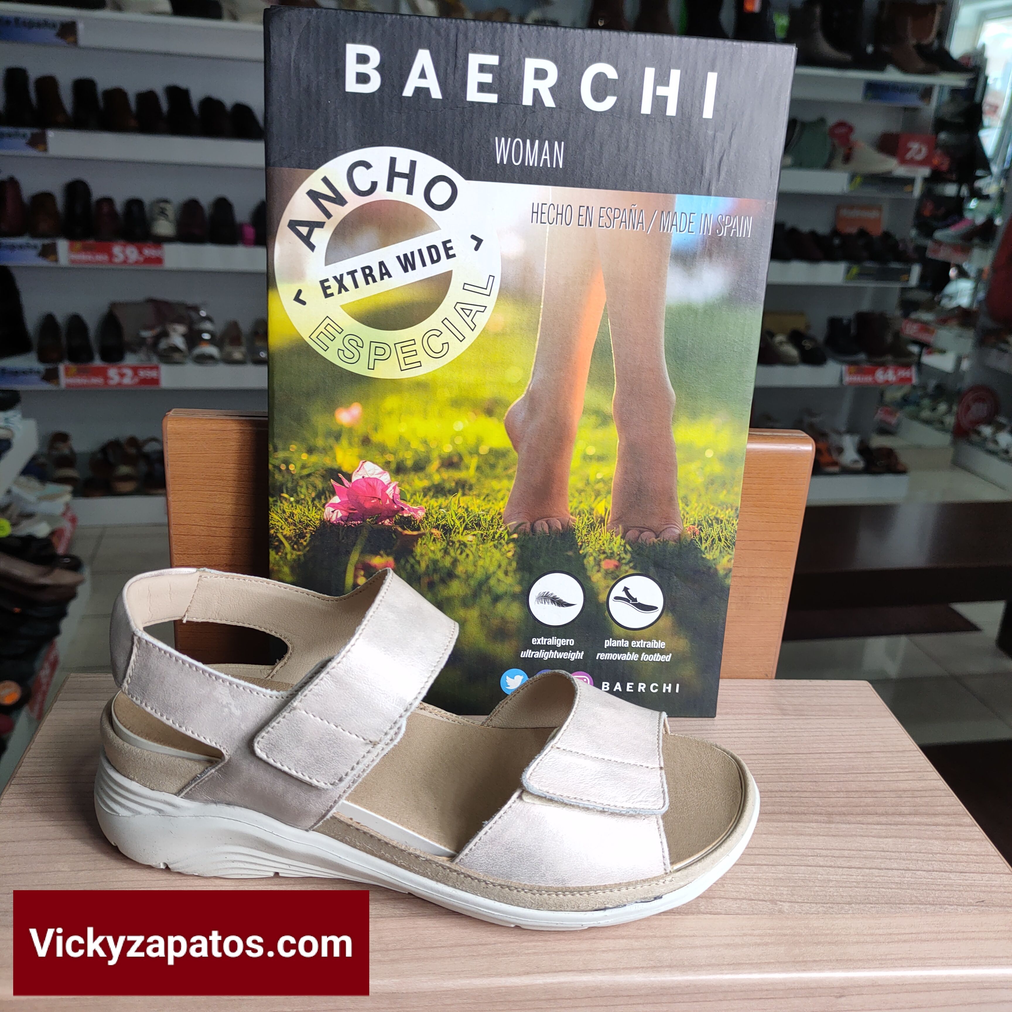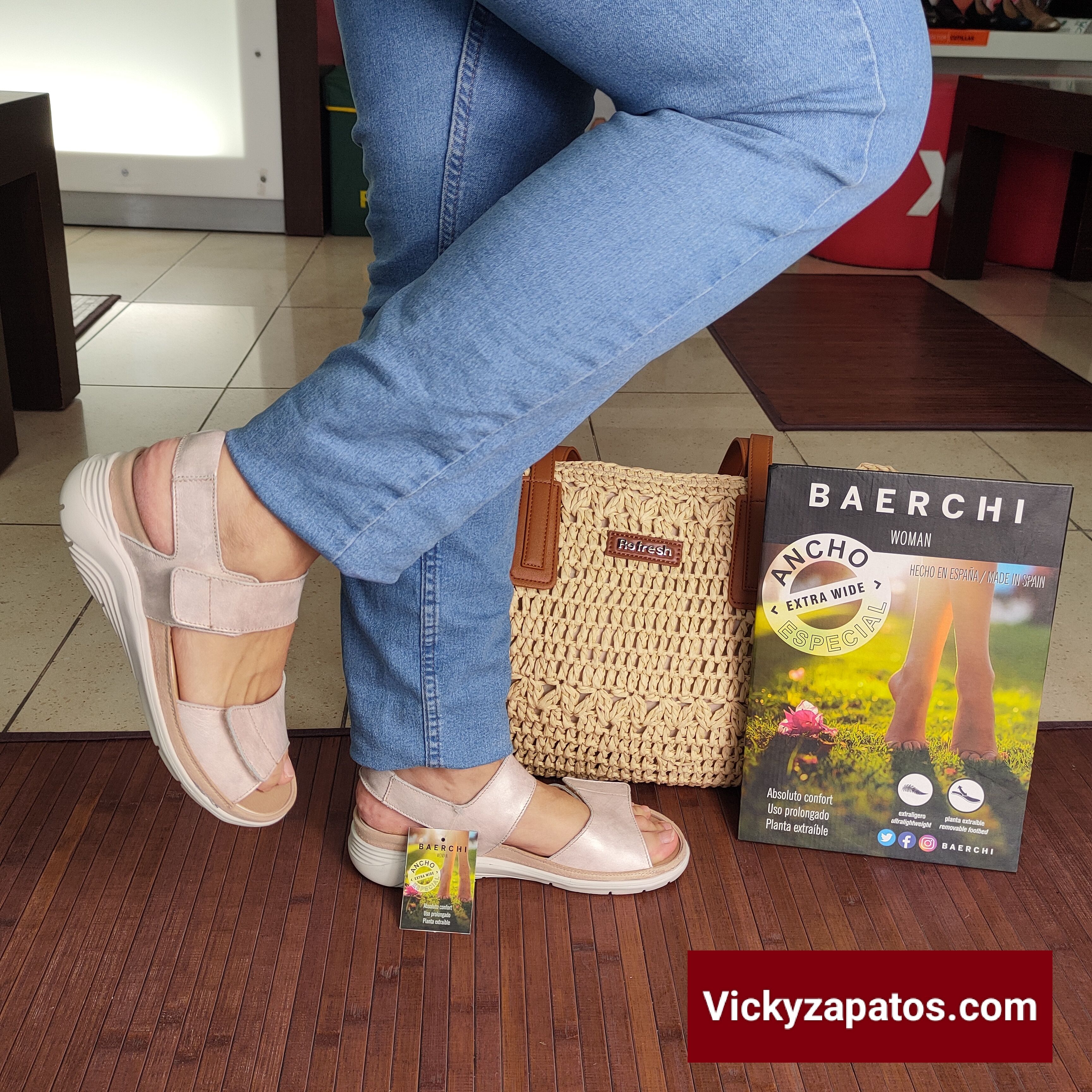 BAERCHI WOMAN: Sandalia de piel con ajustes de velcro, Anchas Especiales, recomendadas para plantilla ortopédica, pisos ultra light de caucho con cuña baja, todo Hecho en España Nueva Colección Primavera Verano