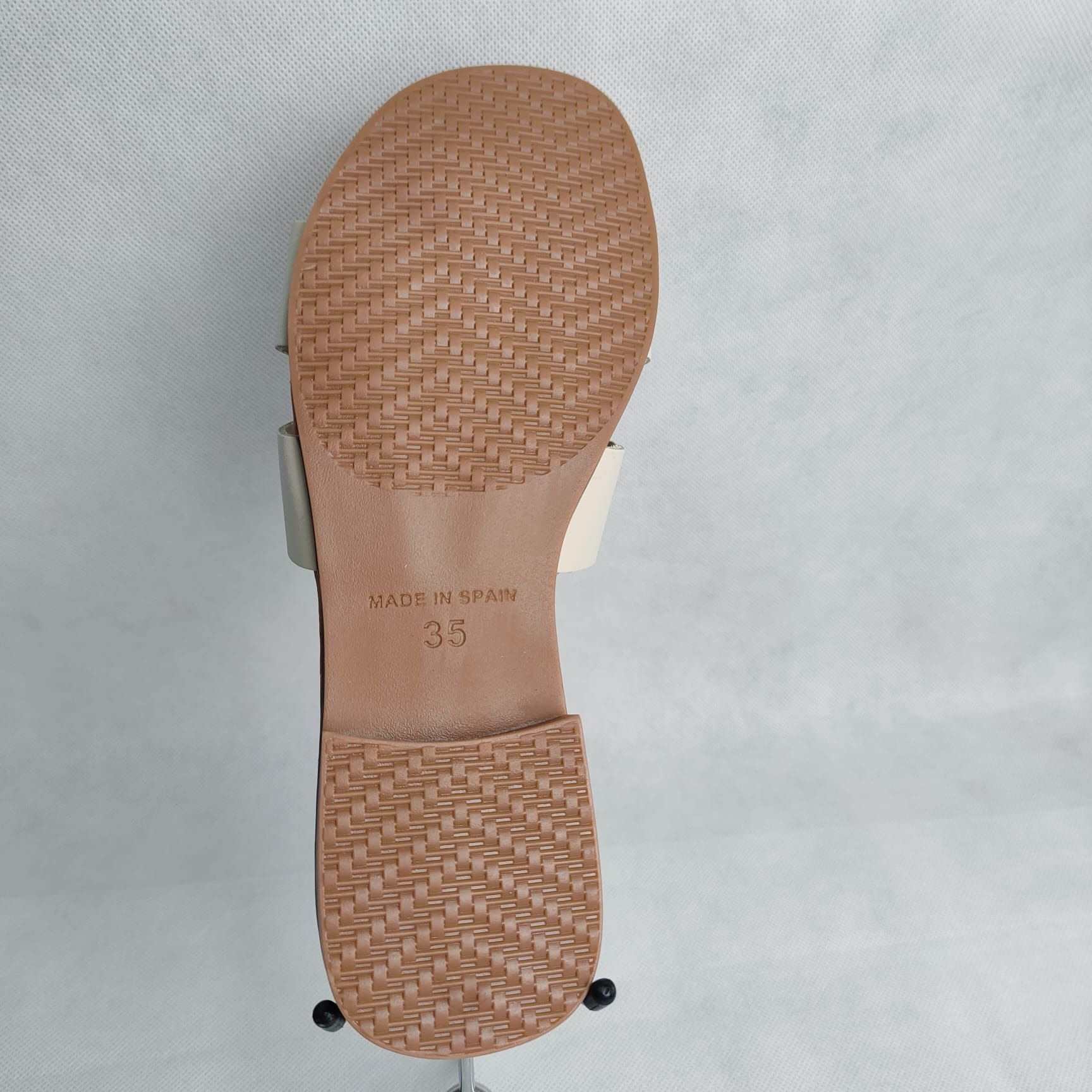 Esta sandalia está fabricada en piel suave de alta calidad en un color blanco, ideal para combinar con cualquier look veraniego. Incorpora un adorno de hebilla dorada en la pala que le aporta un toque moderno y femenino.