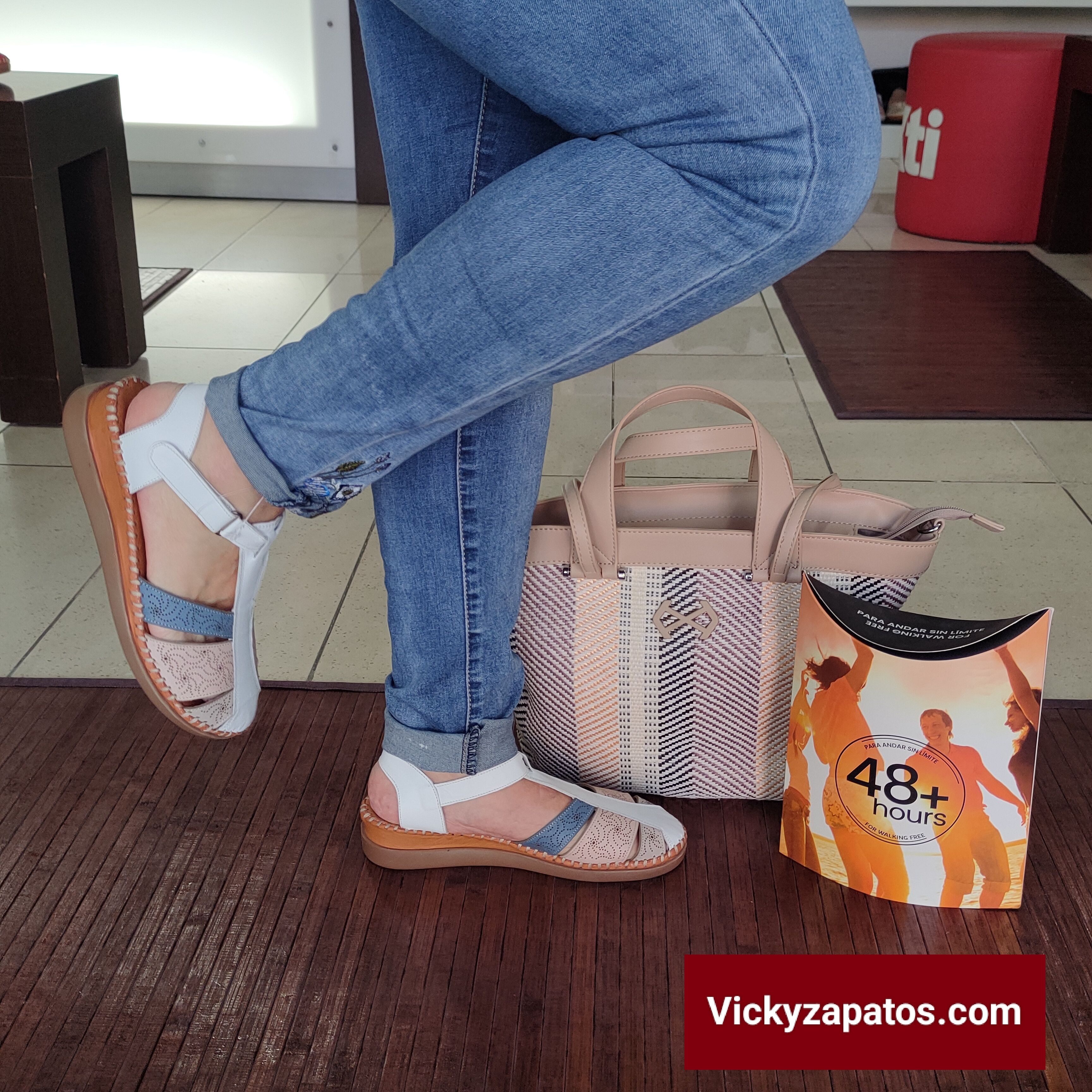 48+HOURS: Sandalia de piel con empeine y Talón cerrado y calado con motivos étnicos, disponible en color: Blanco Combi pulsera de velcro y piso de caucho plano al tono, hechas en España
