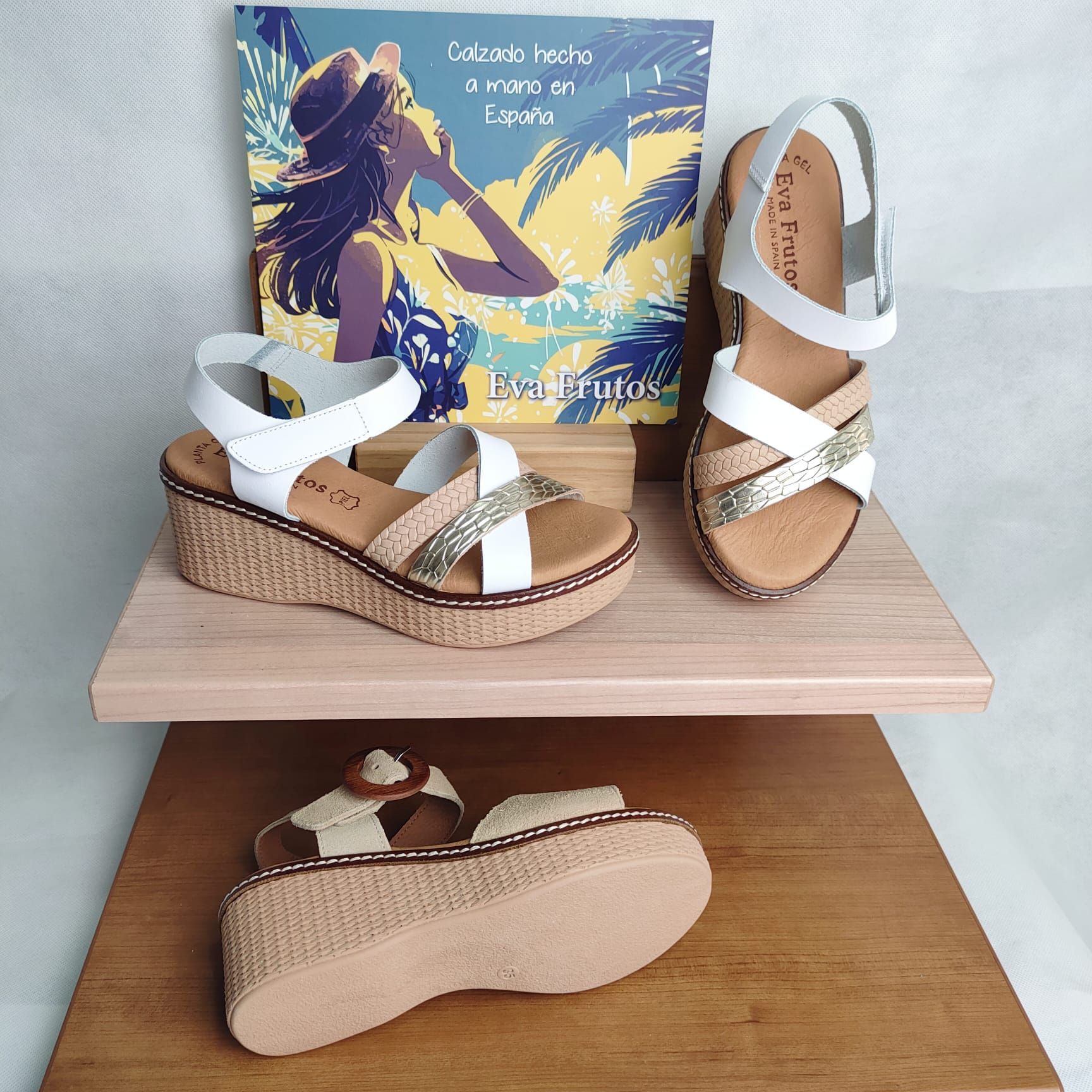 Sandalia en Piel Combinada EVA FRUTOS 6588 con Planta de Gel y Cuña Media Hechas en España