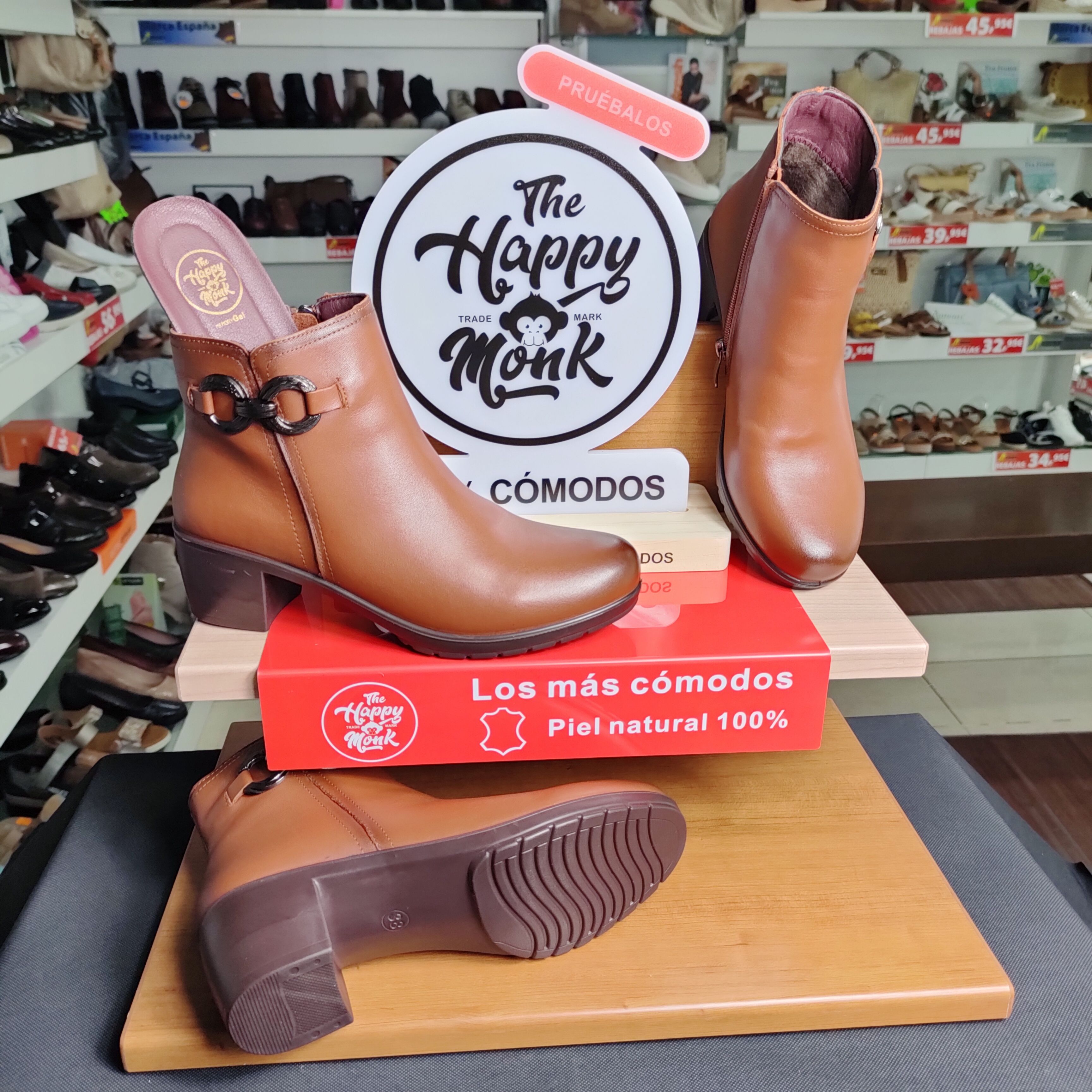 The Happy Monk Altea 017 – Botín casual de mujer en piel color cuero con tacón medio y hebillas - VICKY Zapatos