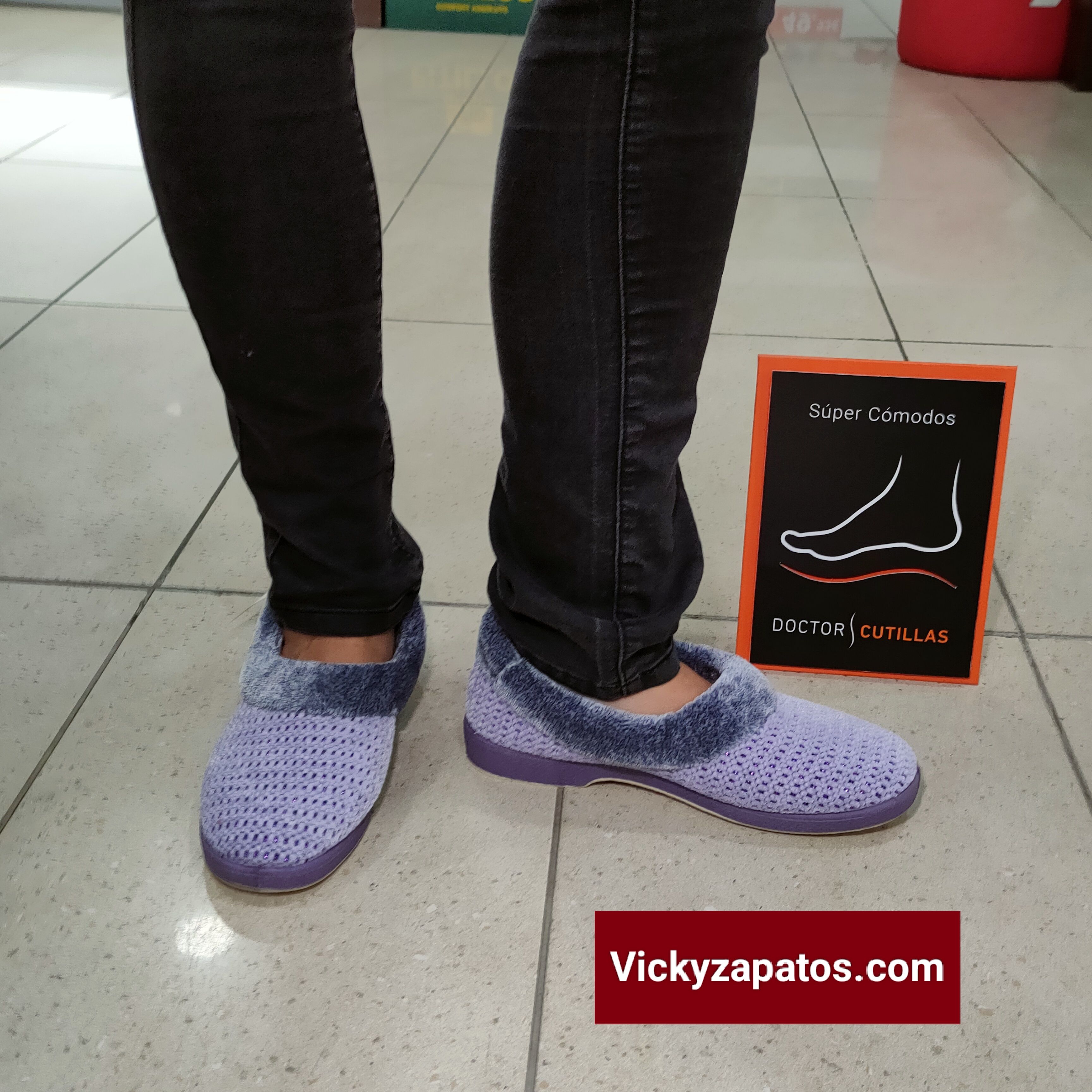 DOCTOR CUTILLAS: Zapatilla cerrada disponible en color Malva, tejido de tercio pelo con brillantes y puño de pelo al tono, transpirables, lavables a mano, relajantes, piso de caucho Hechas en España