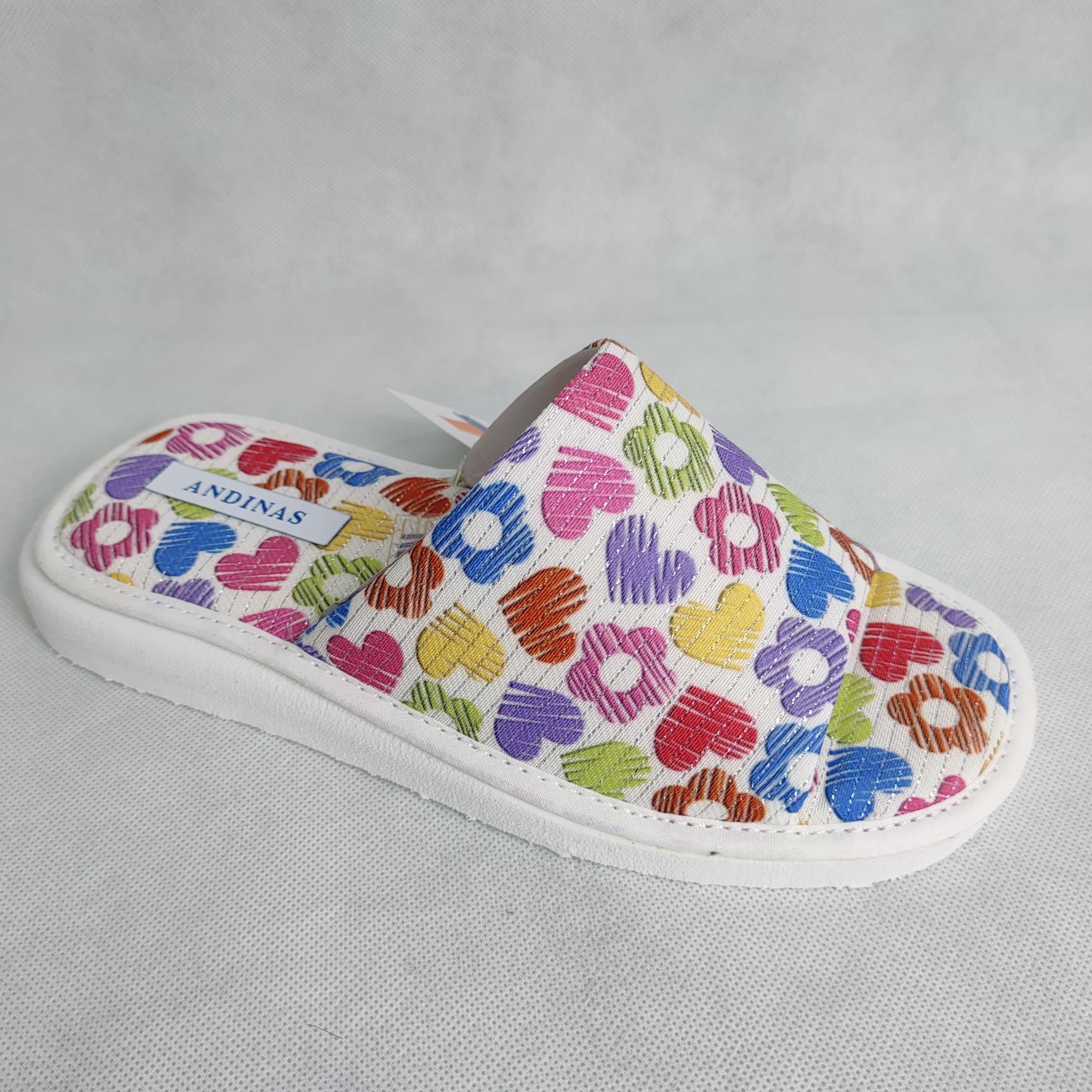 Zapatillas de Casa Mujer ANDINAS Pala Abierta Estampado Corazones con Brillo – Ultraligeras Hechas en España