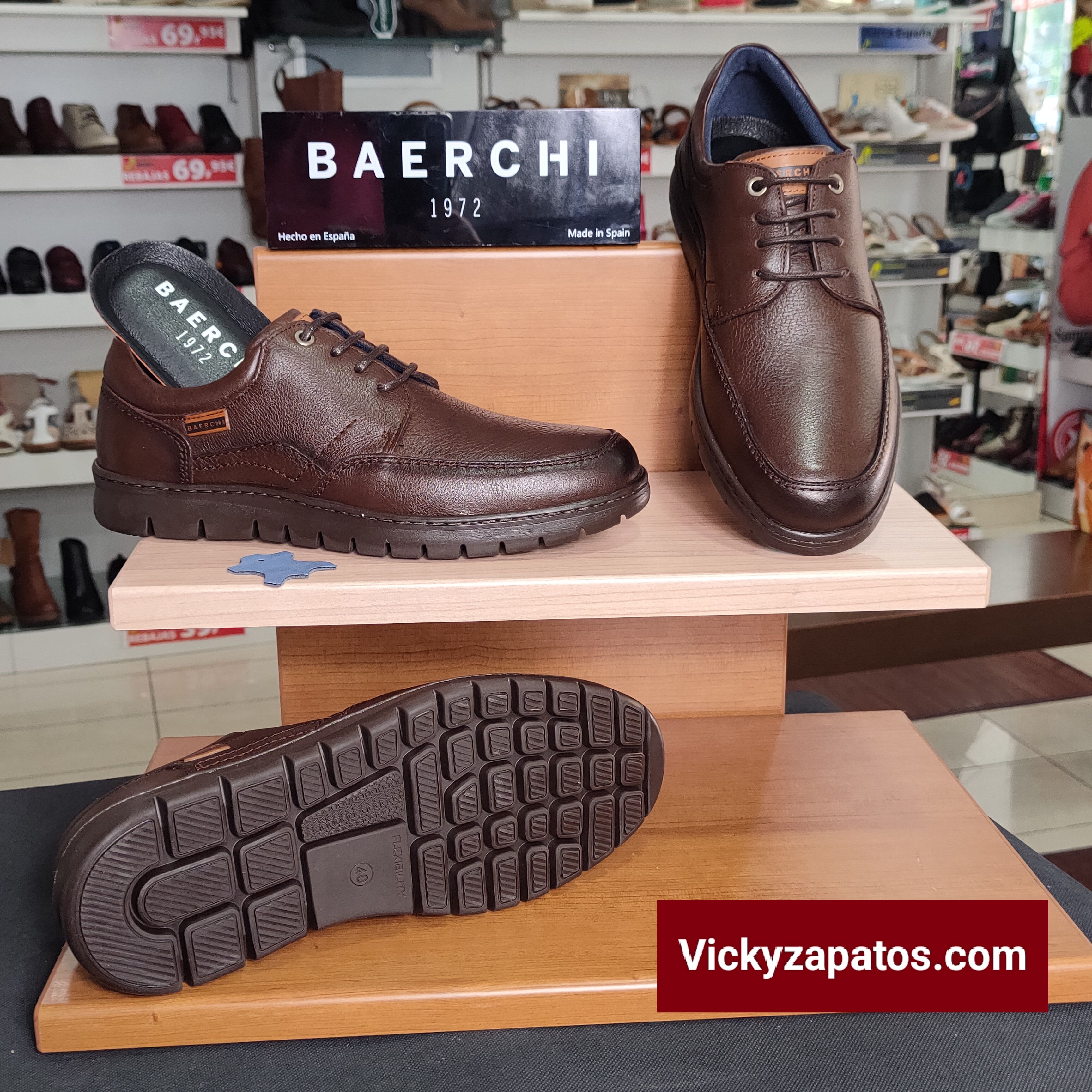 BAERCHI: Zapato Confort todo en piel con cordón, disponible en color Marrón, piso FlexLine, Plantillas Extraíbles, ideales para el invierno, un zapato que siempre está de moda, Hechos en España