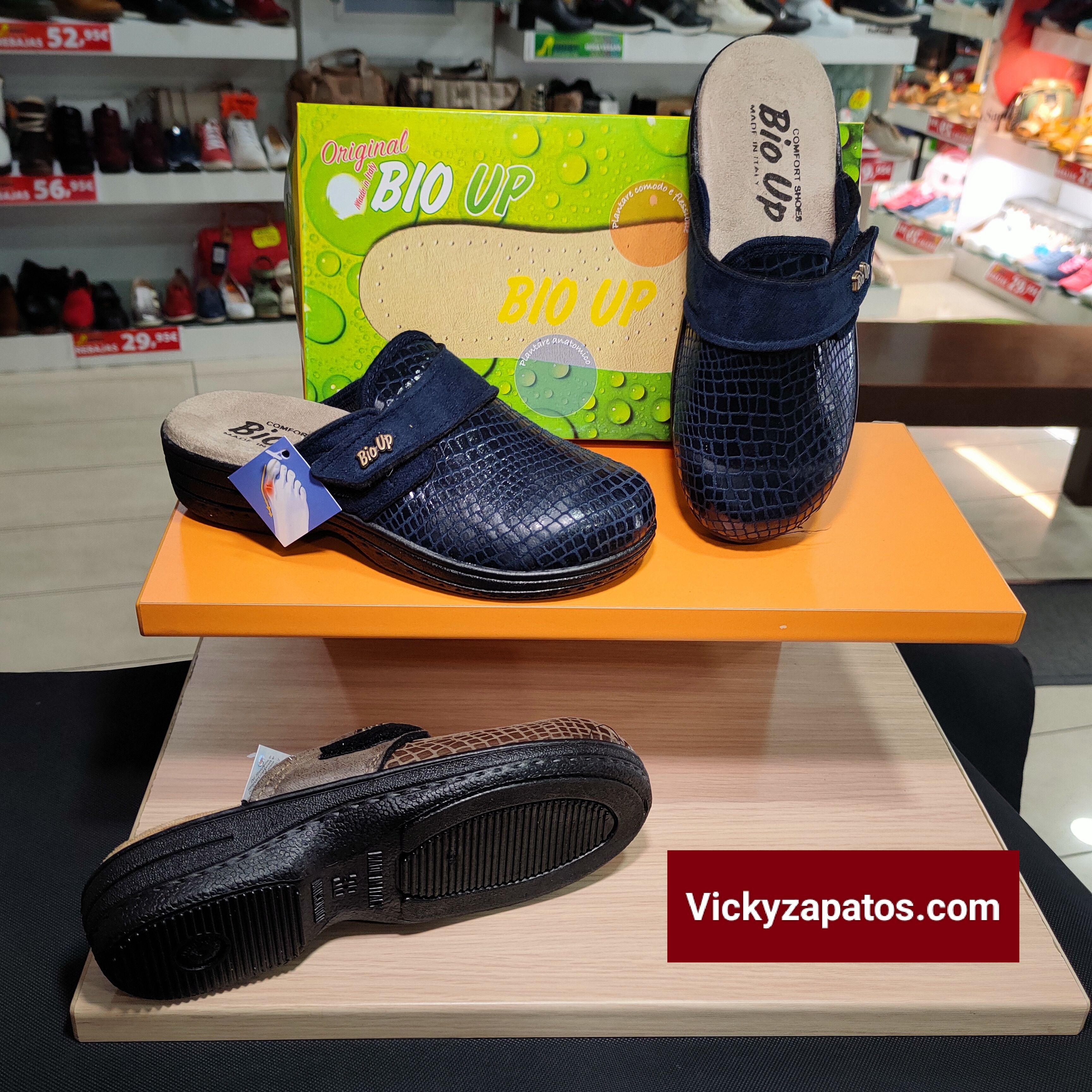 BIO UP: Zueco en licras adaptables especial para pies delicados y con juanetes, tira de velcro ajustable en empeine, piso de caucho antideslizante de máximo confort Made in Italy