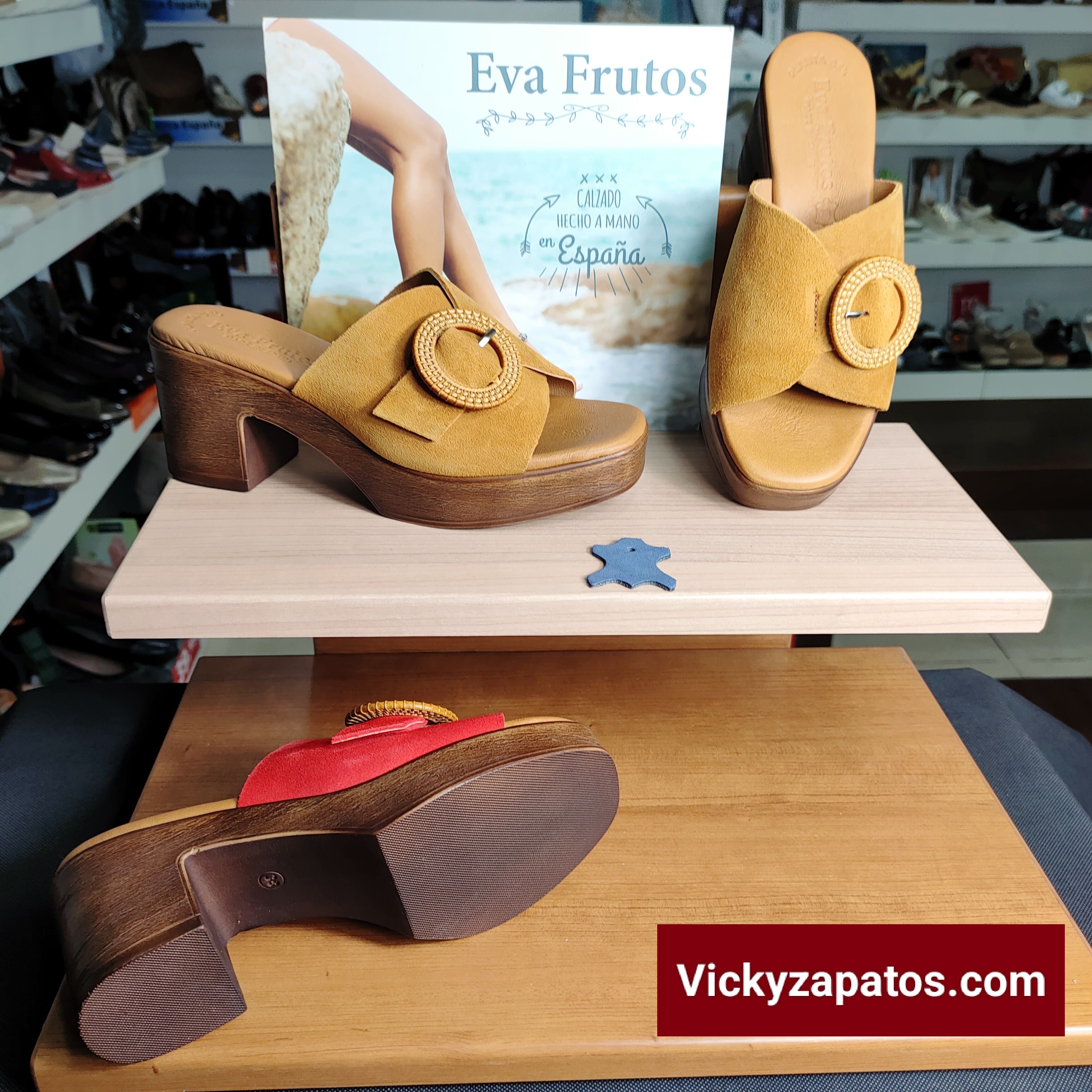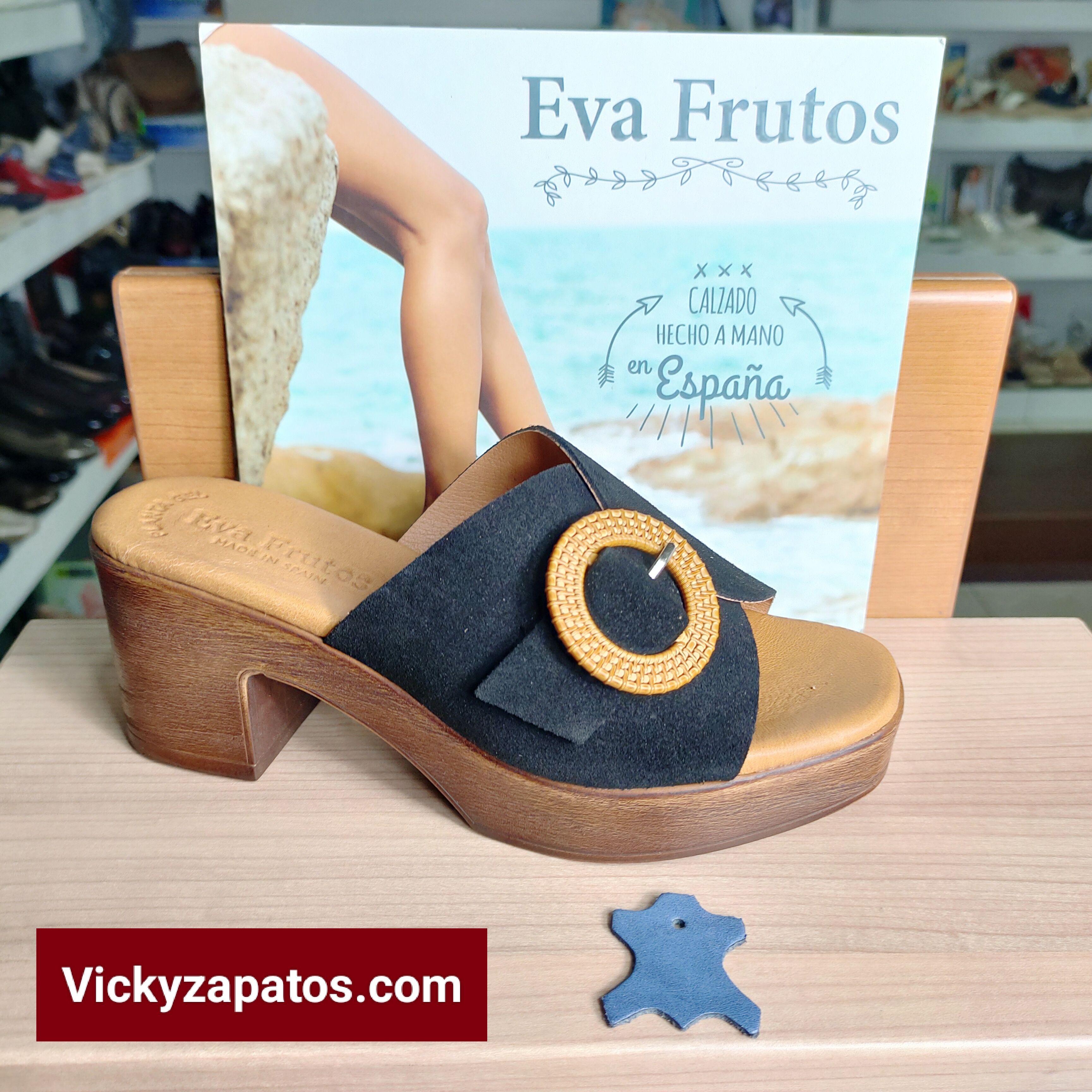 Zueco en Piel y Tacón Medio con Planta de Gel EVA FRUTOS E29 Hechas en España